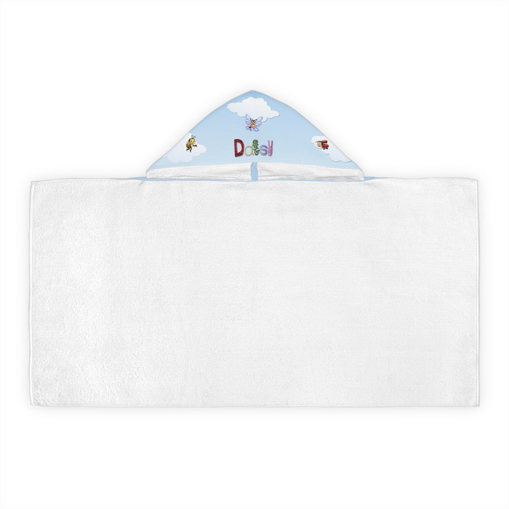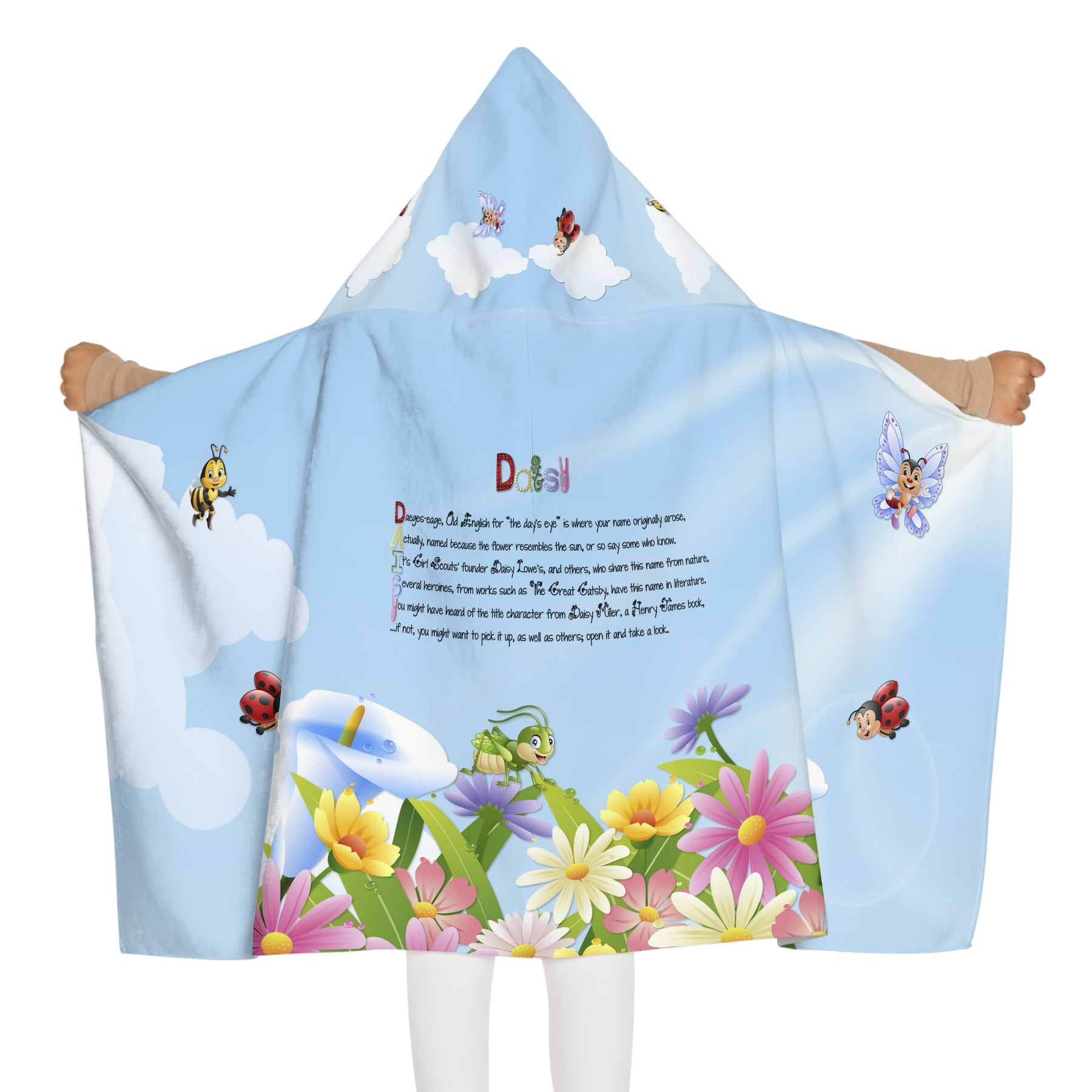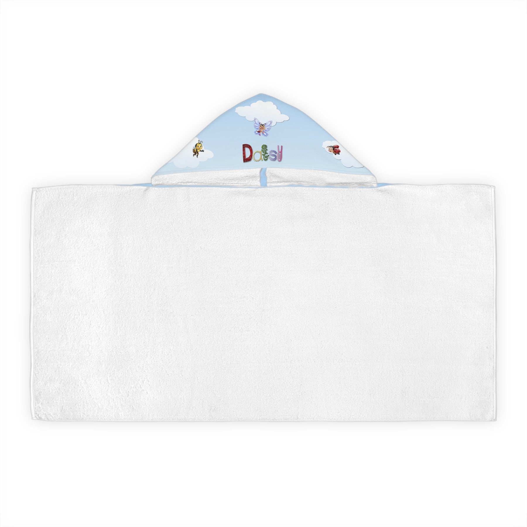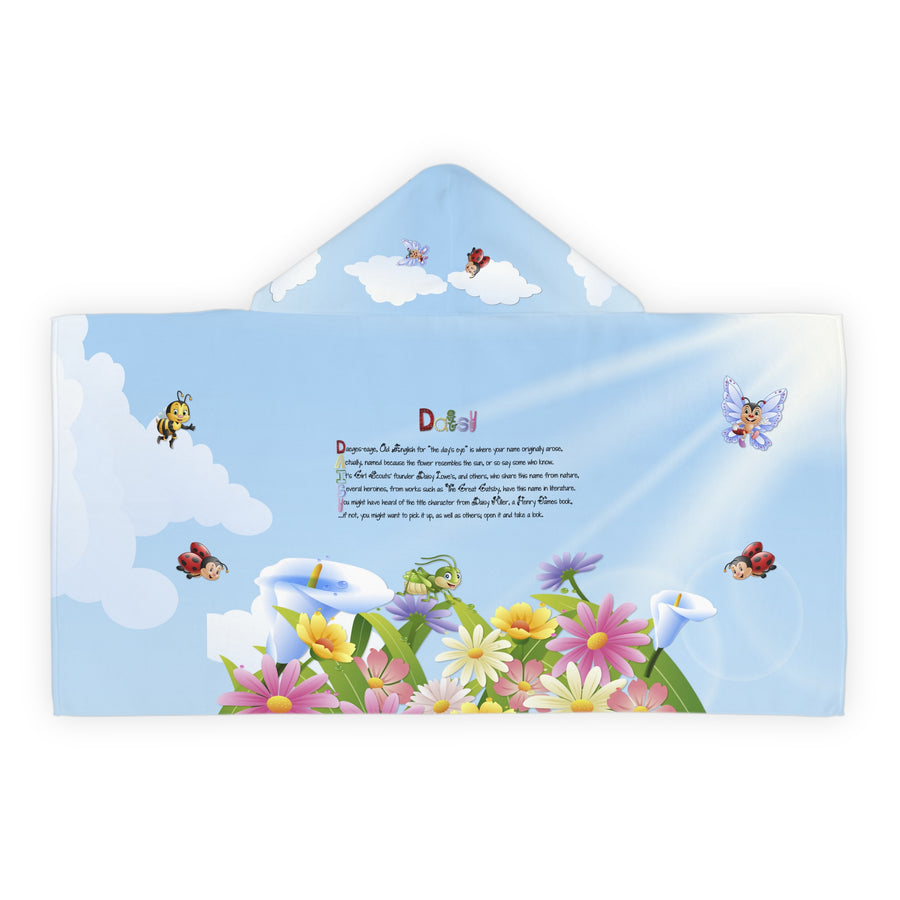 Meet the Namesakes Hooded Towel Collection from Moments in Rhyme. This one has a precious flowers and insects design. Each towel features an acrostic poem with your child's name, its origin, and meaning. The soft cotton terry lining offers excellent absorbency, while the durable polyester front dries quickly. These towels are perfect for the beach or at home, making them a thoughtful gift for birthdays, holidays, or any special occasion. Vibrant colors with an all-over print design. One size fits all (24" x 48"). Do not bleach or dry-clean. Machine wash in cold water and tumble dry on a low heat setting.