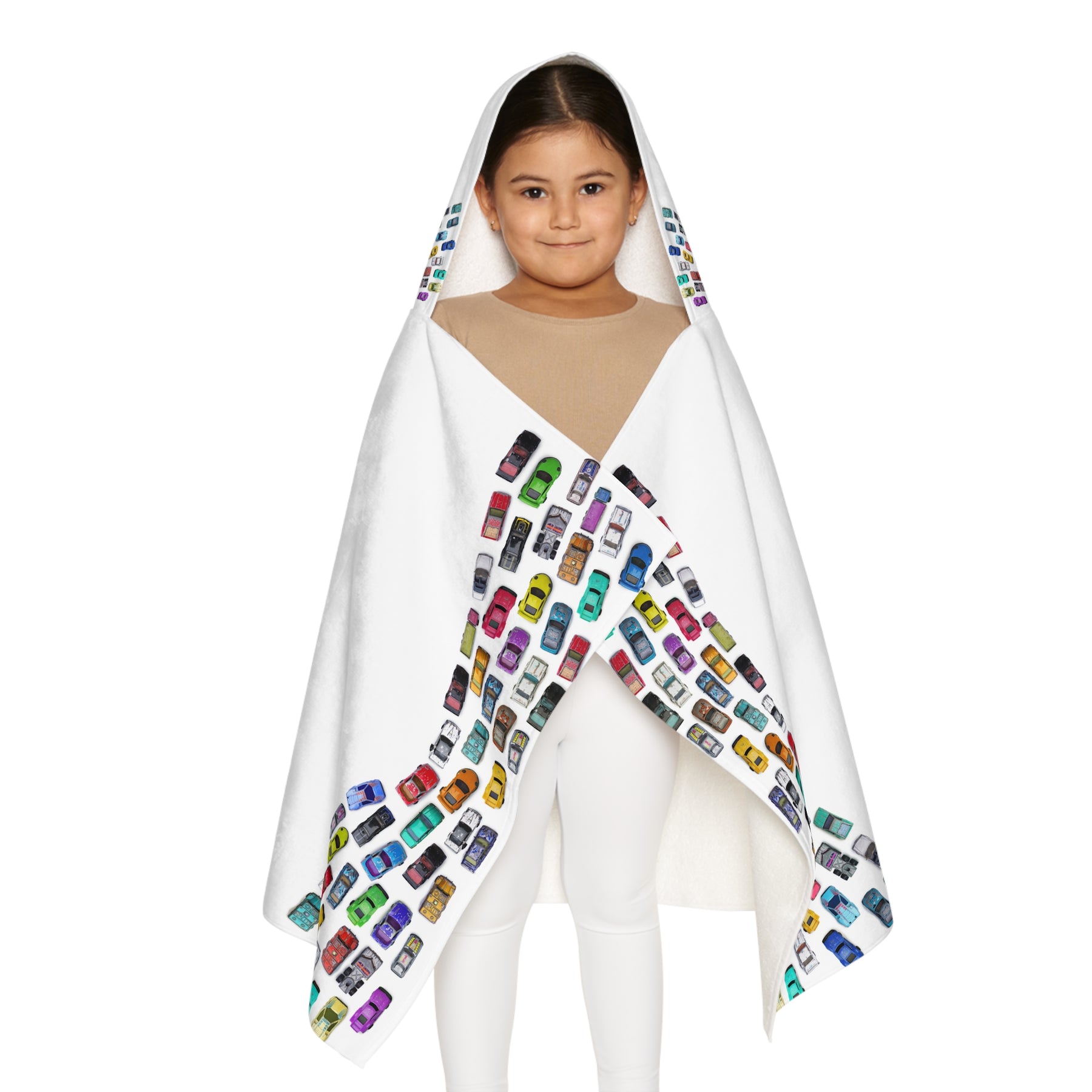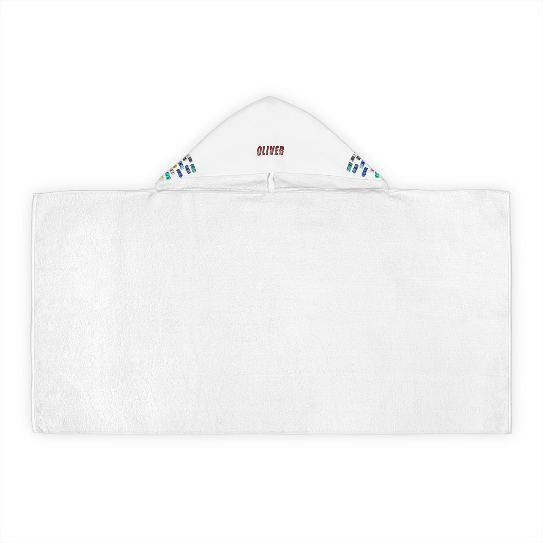 Meet the Namesakes Hooded Towel Collection from Moments in Rhyme. This one has a super-cute toy car design. Each towel features an acrostic poem with your child's name, its origin, and meaning. The soft cotton terry lining offers excellent absorbency, while the durable polyester front dries quickly. These towels are perfect for the beach or at home, making them a thoughtful gift for birthdays, holidays, or any special occasion. Vibrant colors with an all-over print design. One size fits all (24" x 48"). Do not bleach or dry-clean. Machine wash in cold water and tumble dry on a low heat setting.
