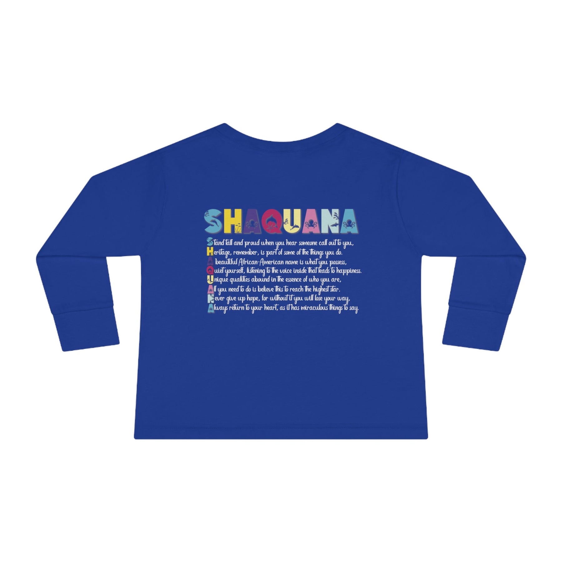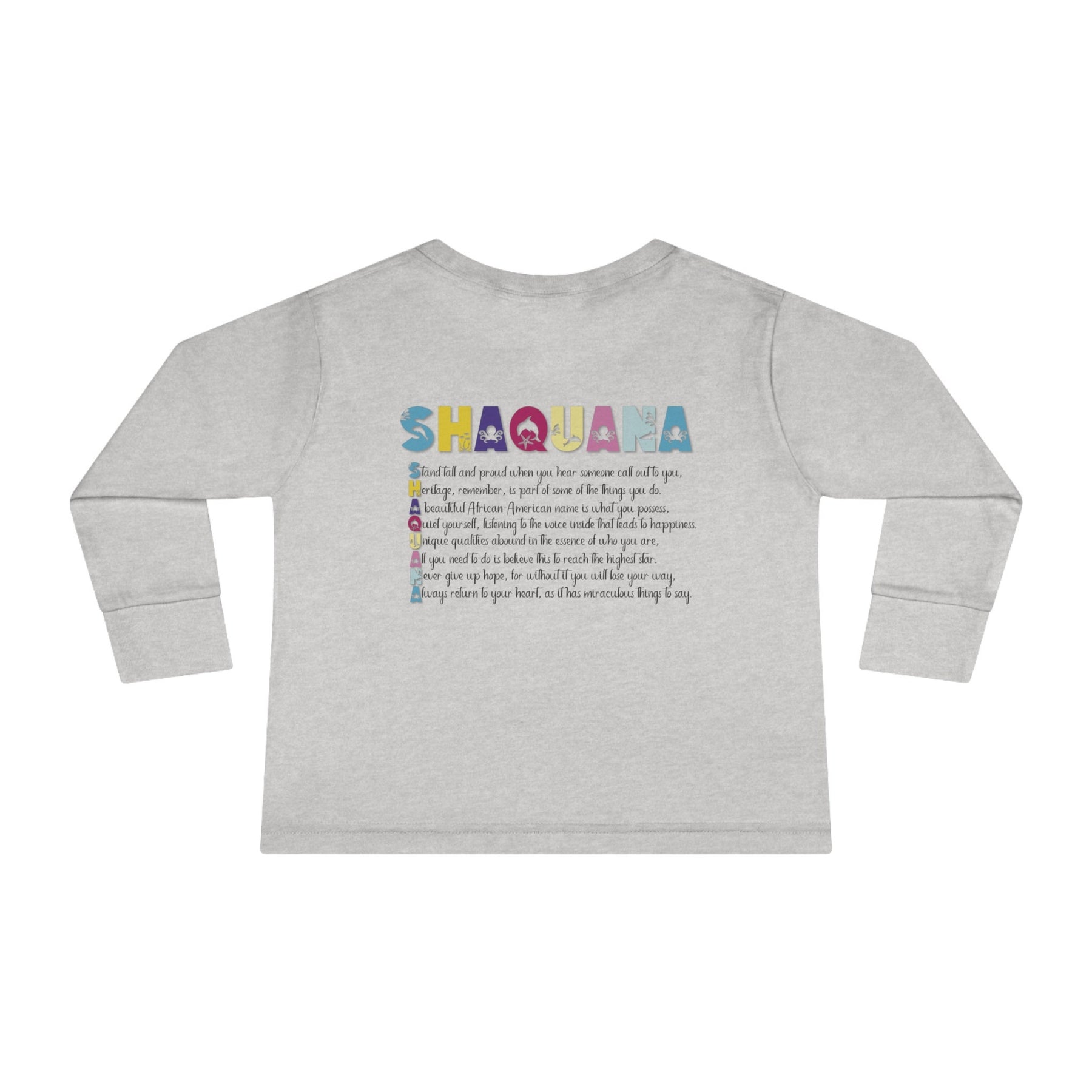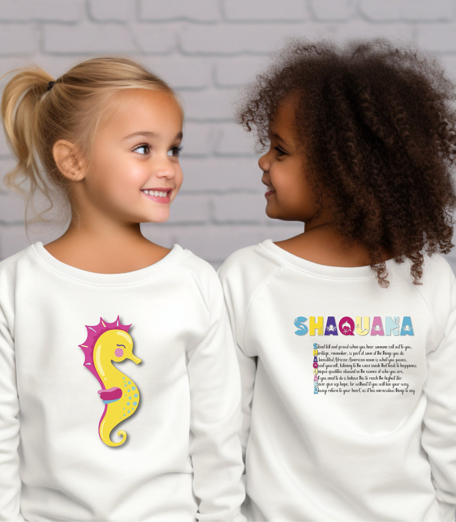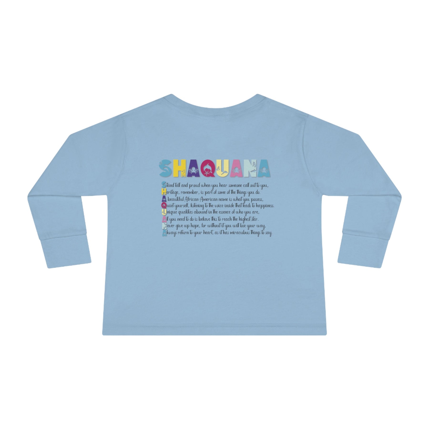 Introducing Moments in Rhyme's "Namesakes" Collection of Toddler Long Sleeve Tees - because everyone's name is special! This Seahorse Design will be a treasured keepsake to hold onto long after your little one has outgrown it. (Psst..., check out the adorable Mommy and Baby Elephant Design too!) "Namesakes" literally means what it says - a one-of-a-kind keepsake of your name, produced in an acrostic poem spelling out the name, with the meaning and origin incorporated. Just tell us what name you want on the product and we'll take care of the rest. But wait, don't think you've seen this before - we put a playful twist on the classic acrostic poem (sorry, "M-O-T-H-E-R"!). No matter how unique the spelling or rarity, we're dedicated to creating personalized acrostic poems for everyone. And it's not just for kids - adults love them too! Our cute poems include the meaning and origin of the name, plus an inspiring verse. Some even feature famous names from different walks of life.