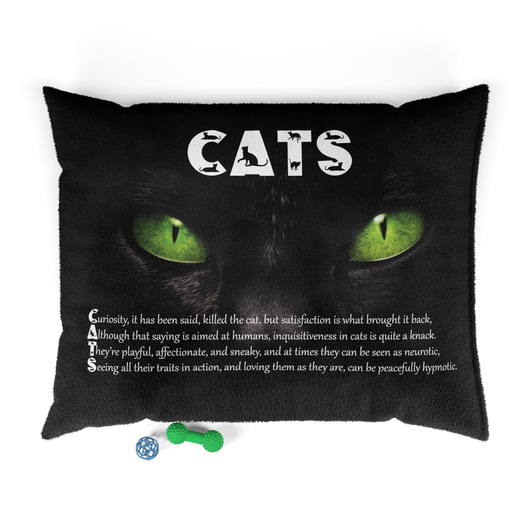 It's Just a Phrase Pet Bed comes features an acrostic poem that spells out Cats and short prose about cat personalities. It gives your pet a soft place to rest and adds a splash of color to any home. This bed is an excellent choice for cat lovers, whether you're celebrating National Pet Day or looking for a thoughtful gift. The cover is easy to remove and machine wash, and the bed comes in several sizes. It's designed for indoor use, so your cat can relax in comfort. For cleaning, use a cold, gentle machine wash; avoid using bleach, and tumble dry on a low setting. The insert can be dry cleaned or spot cleaned.