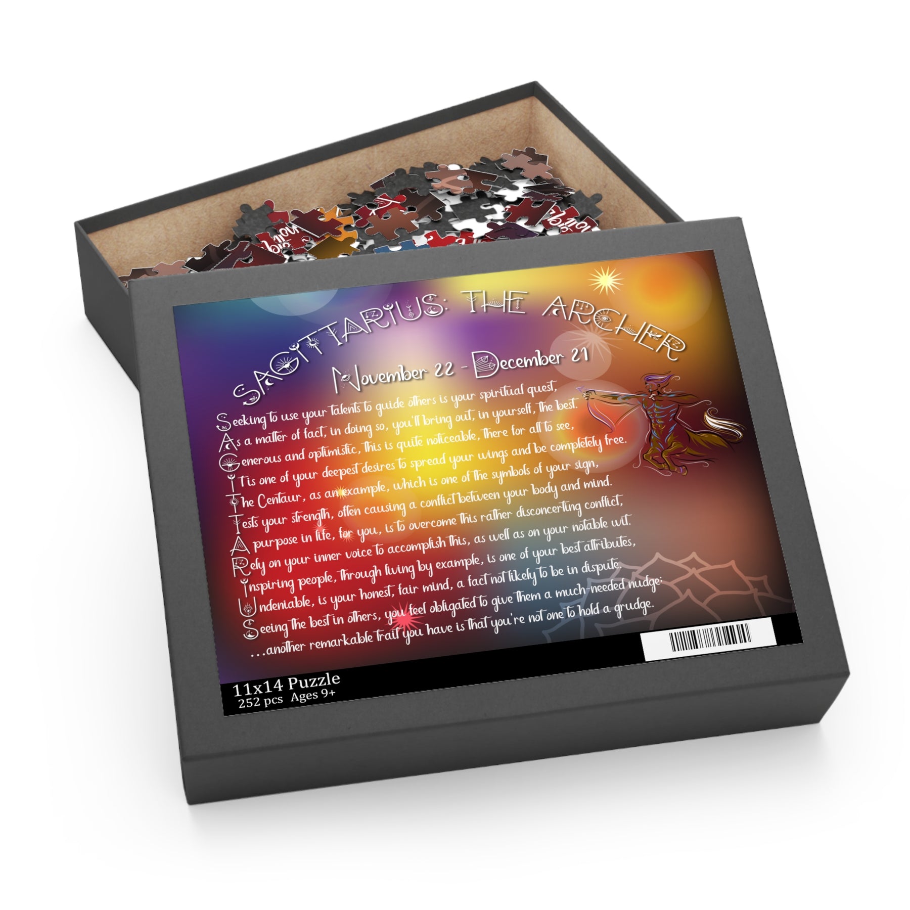 Written in the Stars from Moments in Rhyme offers a fun jigsaw puzzle perfect for a special birthday or holiday gift. This Acrostic Puzzle features a poem spelling out Sagittarius, accompanied by a Sagittarius the Archer graphic and Celestial Font. The poem embodies the spiritual goal and traits associated with your sign. Elegantly crafted, it is a perfect keepsake sure to bring lasting memories. The puzzle is built from sturdy puzzle board with a glossy finish and comes in a box ready for gifting. Available in two sizes.