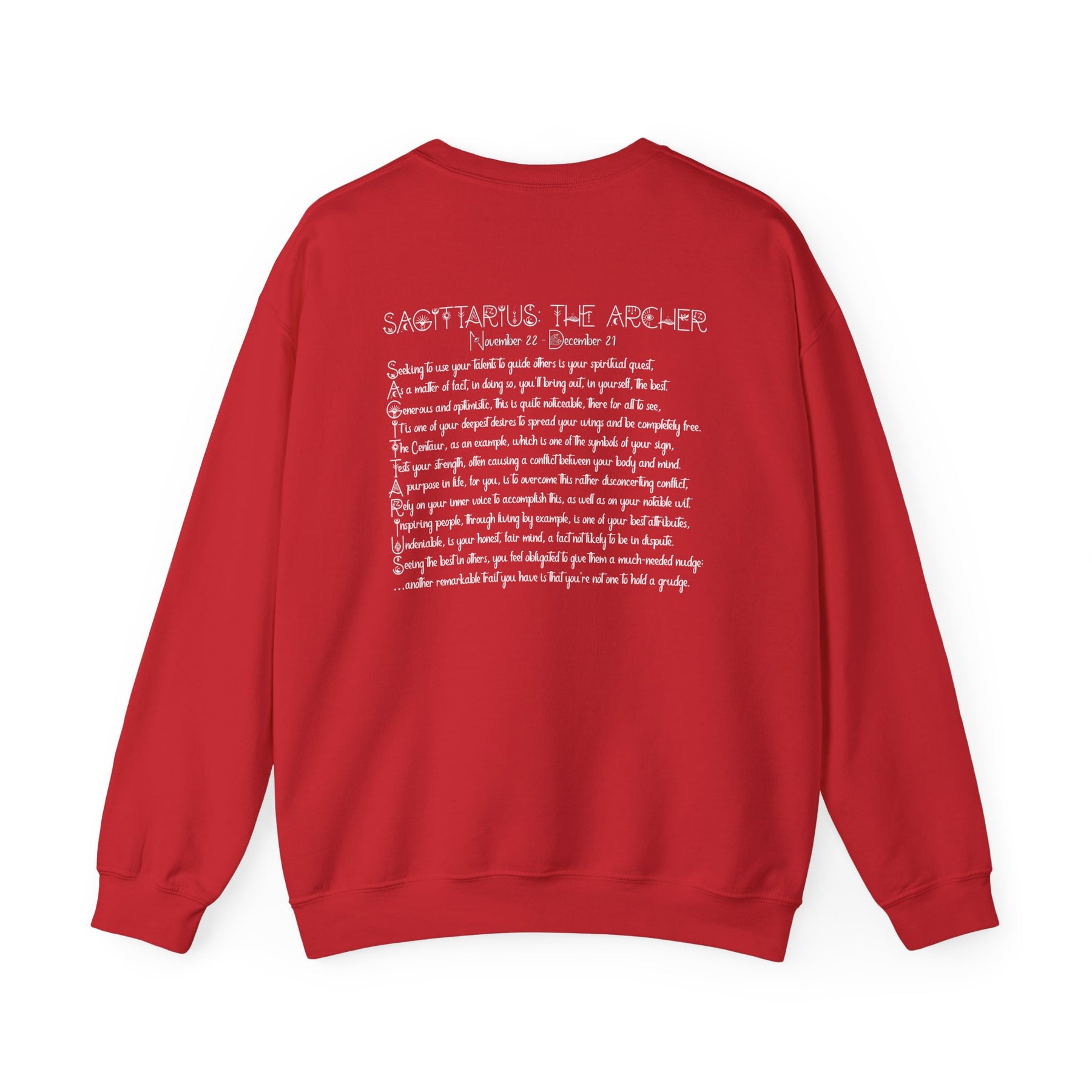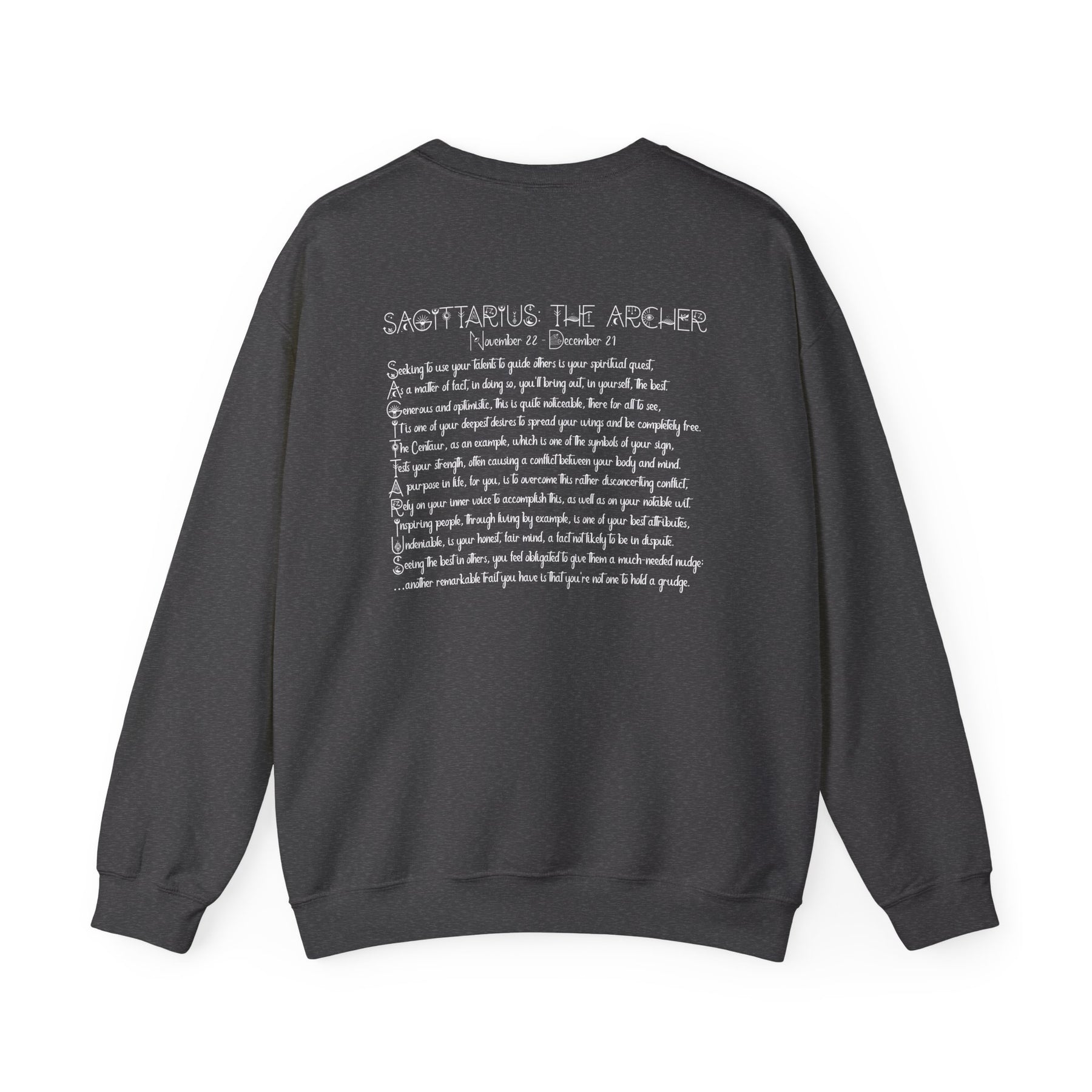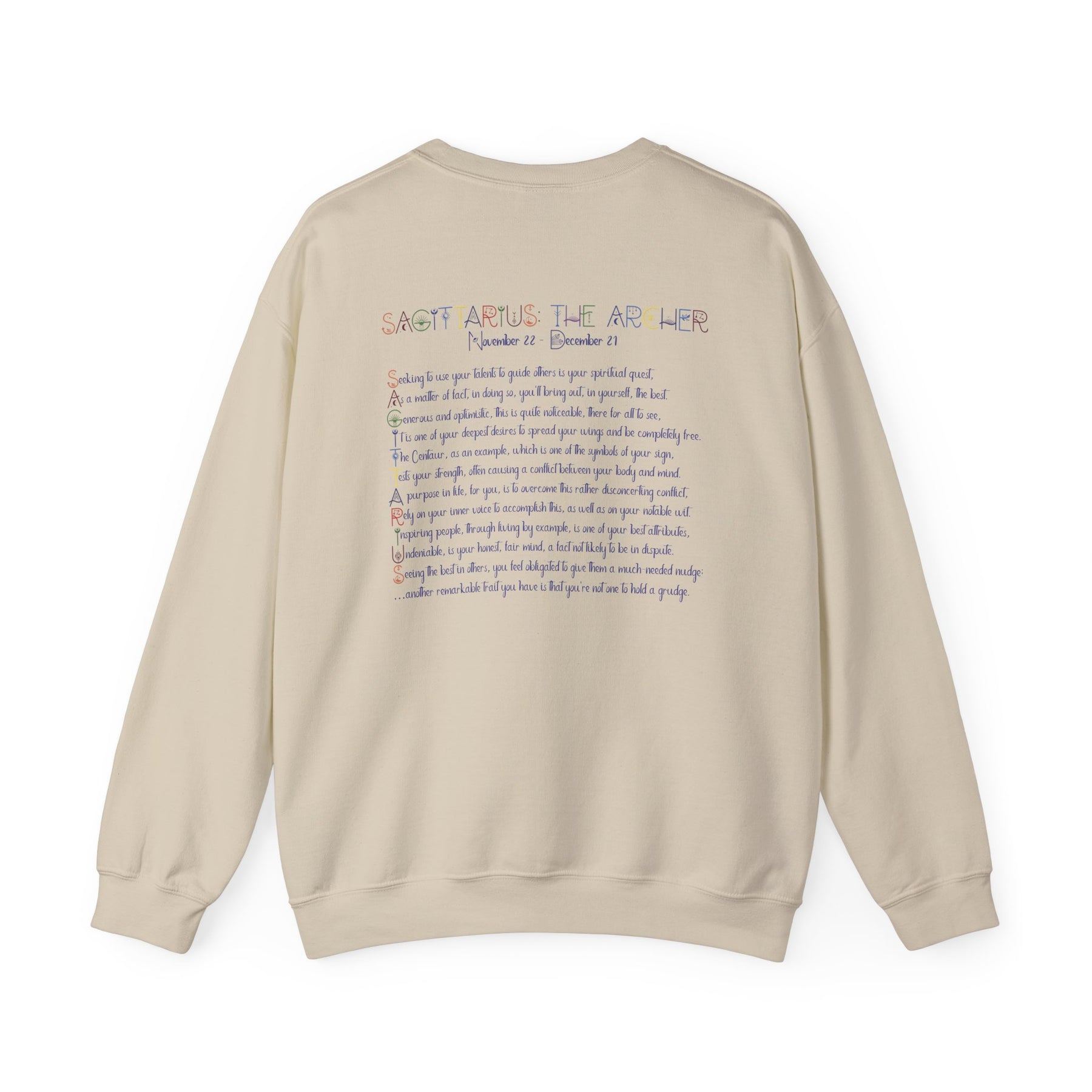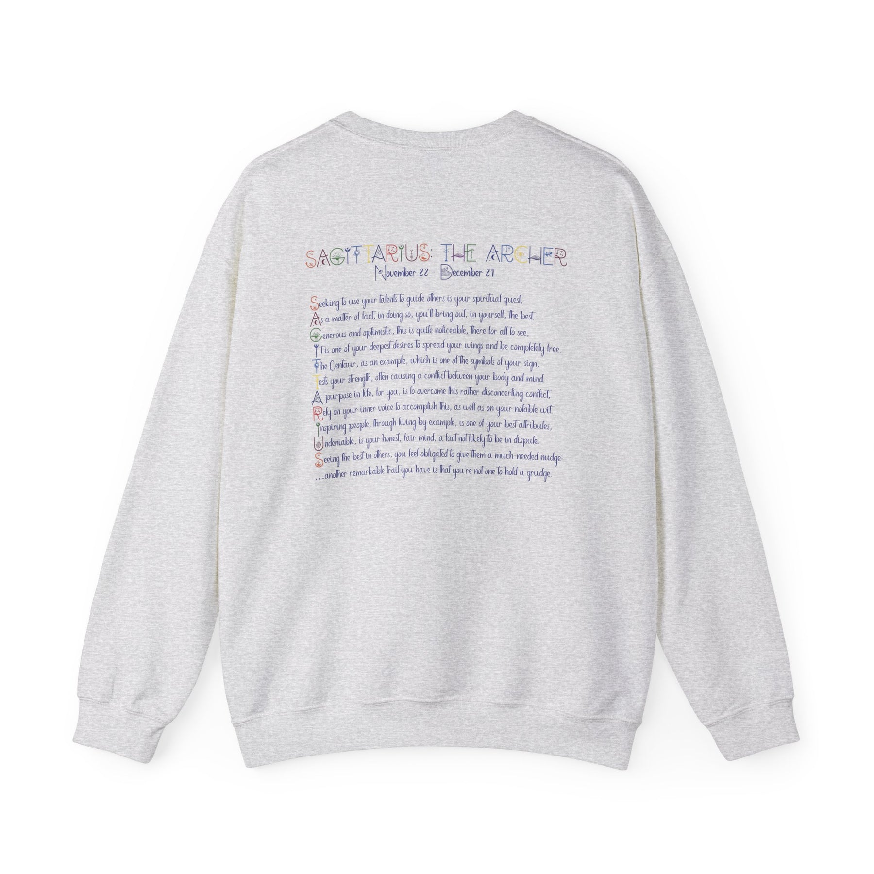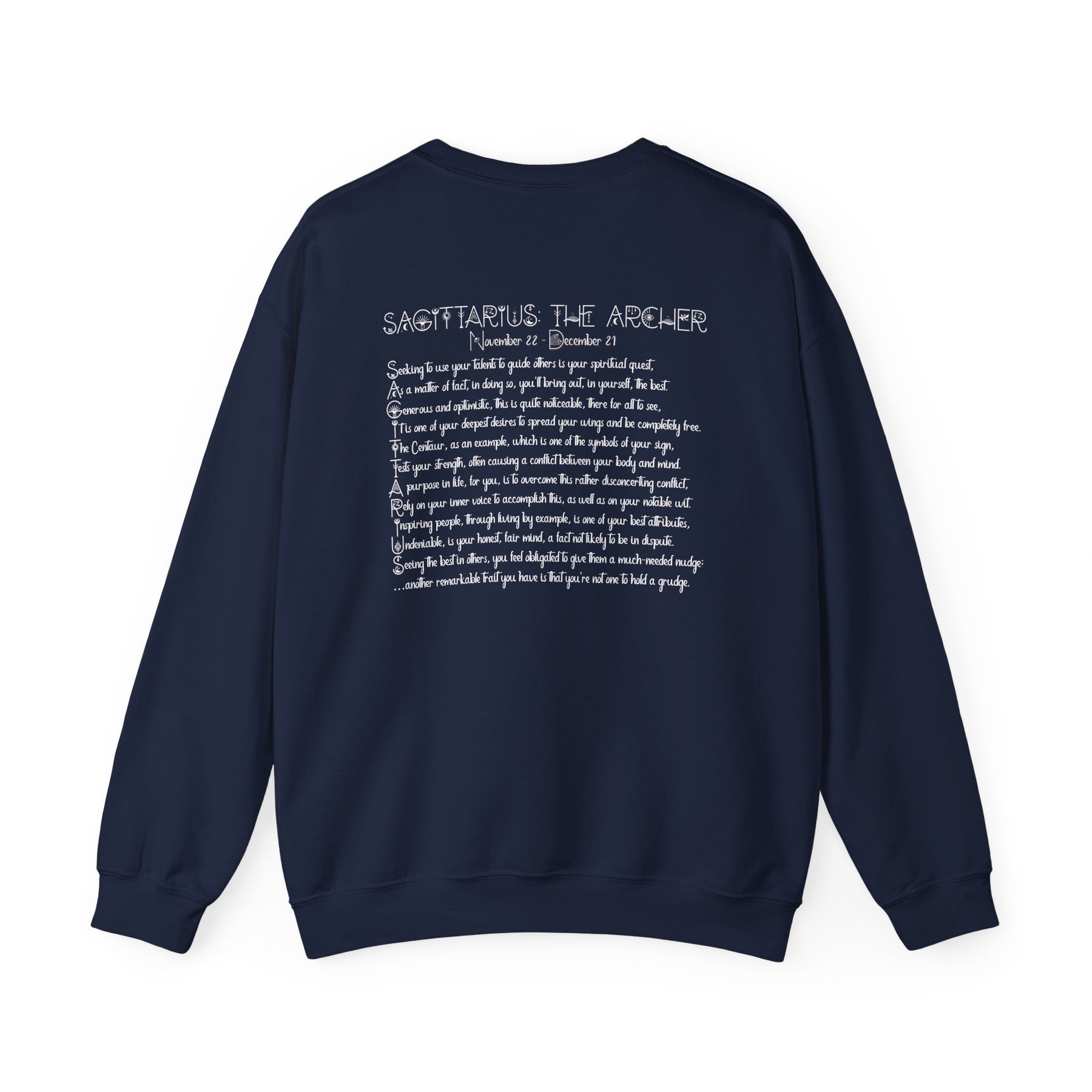 Our Written in the Stars acrostic poem sweatshirt spells out Sagittarius and is a fun way for astrology fans to proudly display their sign. Your horoscope sign appears on the front, while the back features an acrostic poem inspired by Sagittarius' traits and spiritual goal. This sweatshirt is comfortable, durable, and adds a playful astrological touch to your day. It's an excellent staple for your wardrobe and sure to spark conversations with fellow astrology lovers. Plus, the Celestial font really stands out!