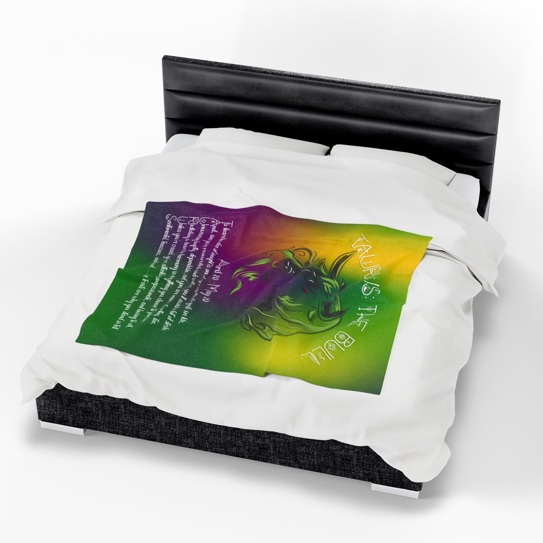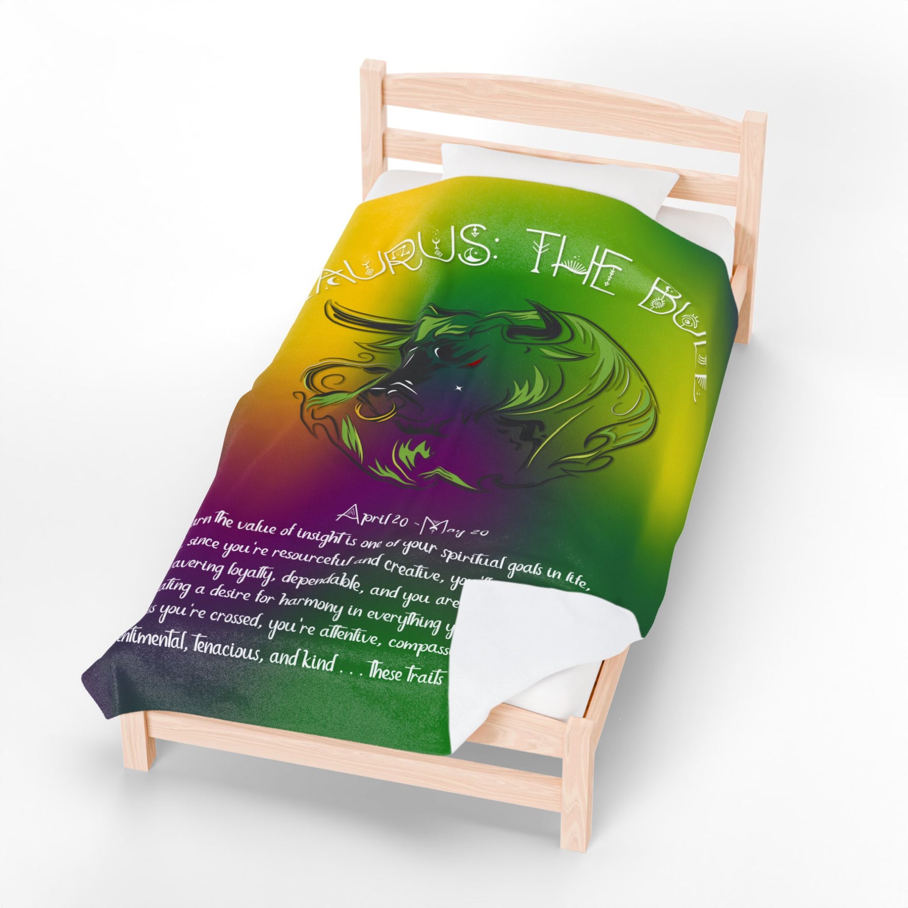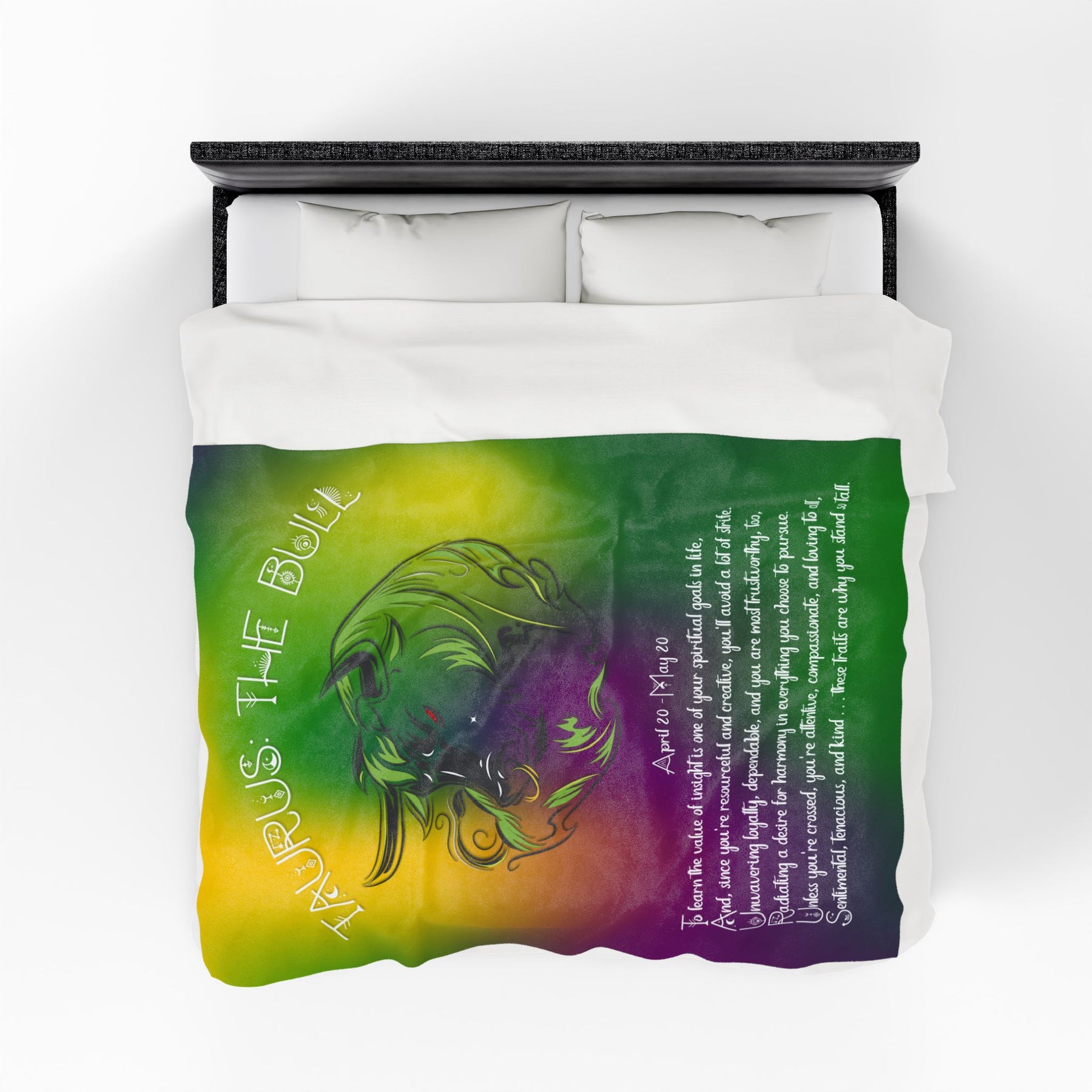 Moments in Rhyme introduces our Written in the Stars Blanket Collection. Welcome to your new favorite blanket. You're gonna love it! Take the stars with you wherever you go with this beautiful Velveteen plush blanket! It features an acrostic poem that spells out Taurus with the traits and spiritual goals associated with the sign. It also features a large, unique graphic of The Bull and is the perfect Christmas or birthday gift for any astrology lover. These blankets are delicate, soft, and vibrant in color. It's the ideal blanket for outdoor events and cozy winter snuggles. Don't forget to check out the amazing font, too! Available in three sizes. To clean, machine wash cold. Hand washing will extend the quality of the product. Do not iron, bleach, or dry-clean.