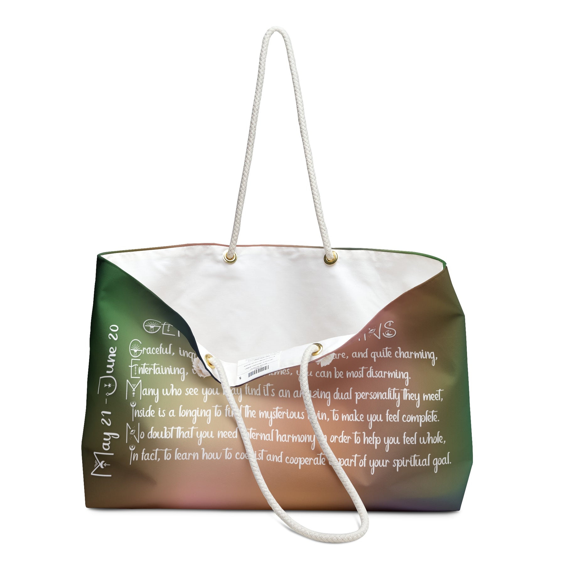 Take your essentials with you in style with our Written in the Stars Weekender Bag Collection. Each roomy tote features an acrostic poem that spells out Gemini. This bag is more than just practical—it makes a statement and celebrates both words and astrology. It’s great for weekends, the gym, or daily use, especially if you love literary art and all things cosmic. It also makes thoughtful gifts for bridesmaids, birthdays, holidays, or just for yourself. With lots of space for your things, this bag is sure to become a favorite. Give someone special a gift they can use for years. One size: 24" x13"