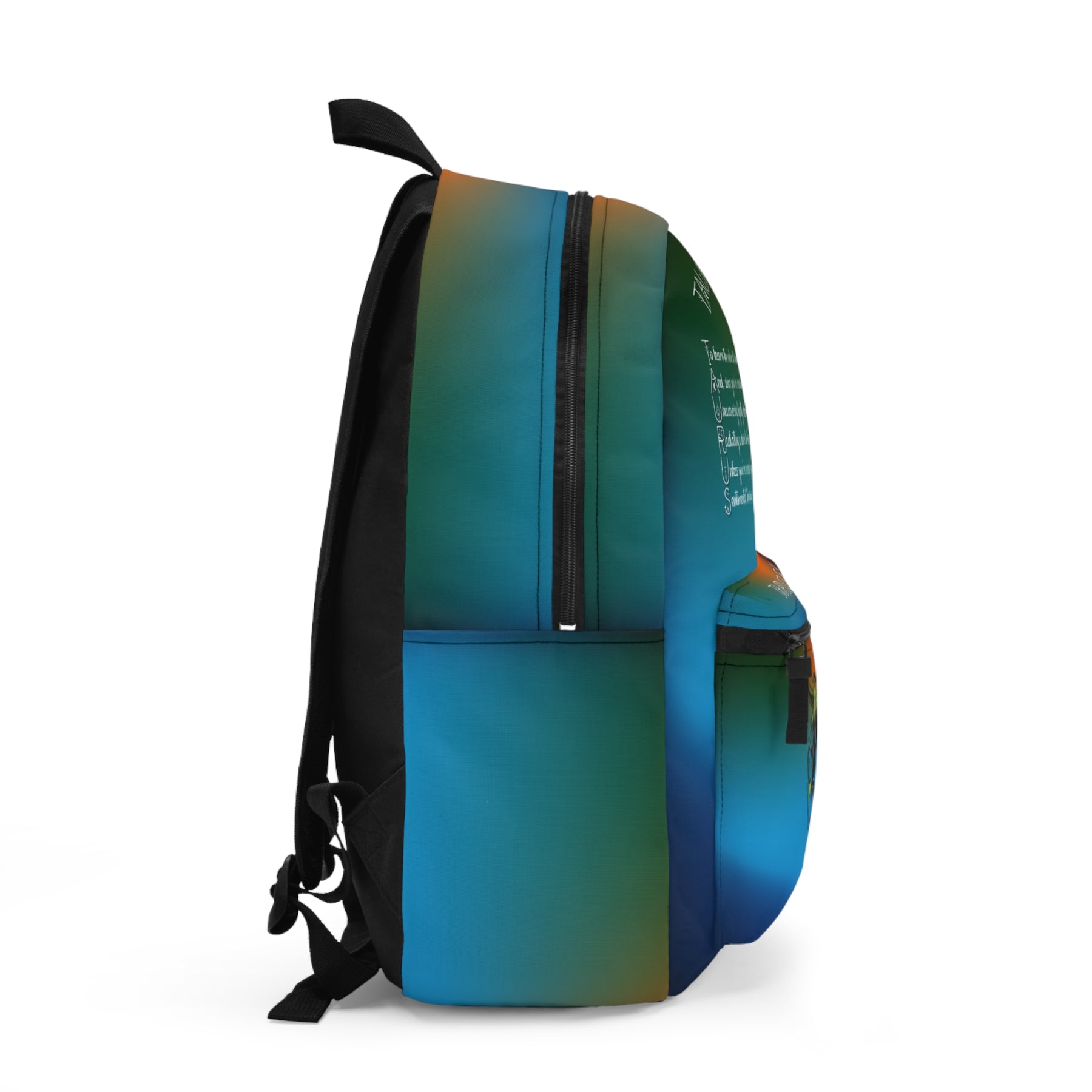 Our Written in the Stars acrostic poem backpack spells out Taurus and is a fun way for astrology fans to proudly display their sign. It has a unique horoscope sign design and features an acrostic poem inspired by Taurus' traits and spiritual goals. This backpack is comfortable, durable, and adds a playful astrological touch to your day. It's an excellent way to spark conversations with fellow astrology lovers. Plus, the Celestial font really stands out! Made from spun polyester, it is lightweight and tough, weighing just 1.3 lbs. Adjustable shoulder straps and a blank name tag inside add convenience, and the waterproof material keeps your things safe.