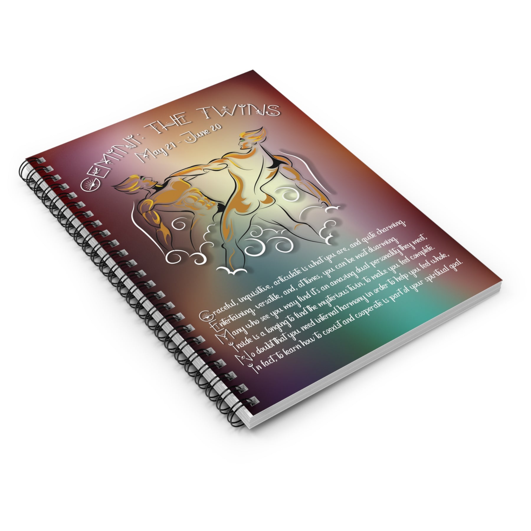 Take a look at the Written in the Stars Acrostic Poem Spiral Notebook Collection from Moments in Rhyme. This notebook includes an acrostic poem for Gemini, showing off its traits and spiritual goal, along with a Gemini the Twins graphic. Use it for shopping lists, school notes, or journaling. There’s lots of space for your thoughts. It makes a thoughtful birthday, Valentine’s, Christmas, or everyday gift to show someone you care. The sturdy printed cover keeps it safe wherever you go, and the Celestial font adds a special touch. It also has a dark grey back cover and 59 double-sided sheets.