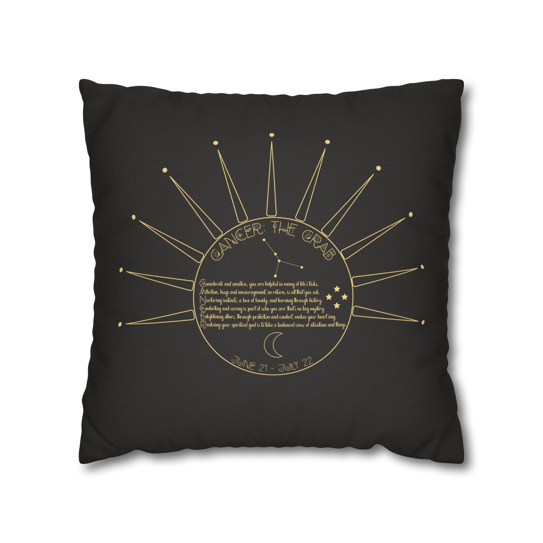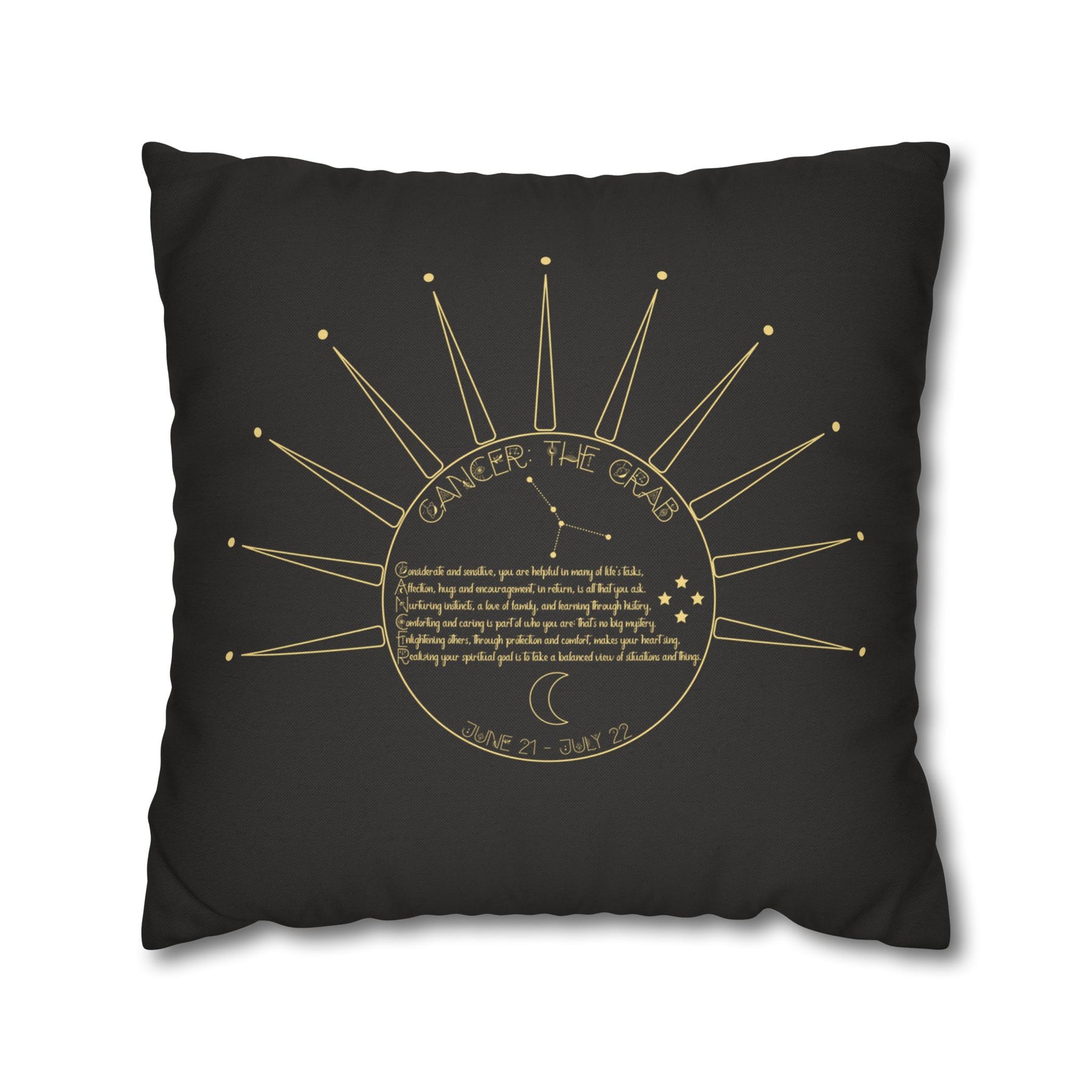 Moments in Rhyme presents our "Written in the Stars Pillow" pillow collection. One side has an acrostic poem spelling out "Cancer",  with the traits and spiritual goal incorporated in the poem. The other side has a unique version of the astrological sign. These serve as statement pieces, making any room very special. Celebrate your astrological sign. Perfect for astrology enthusiasts and those looking to add a personal touch to their home decor. Ideal for birthdays, holidays, or any special occasions.