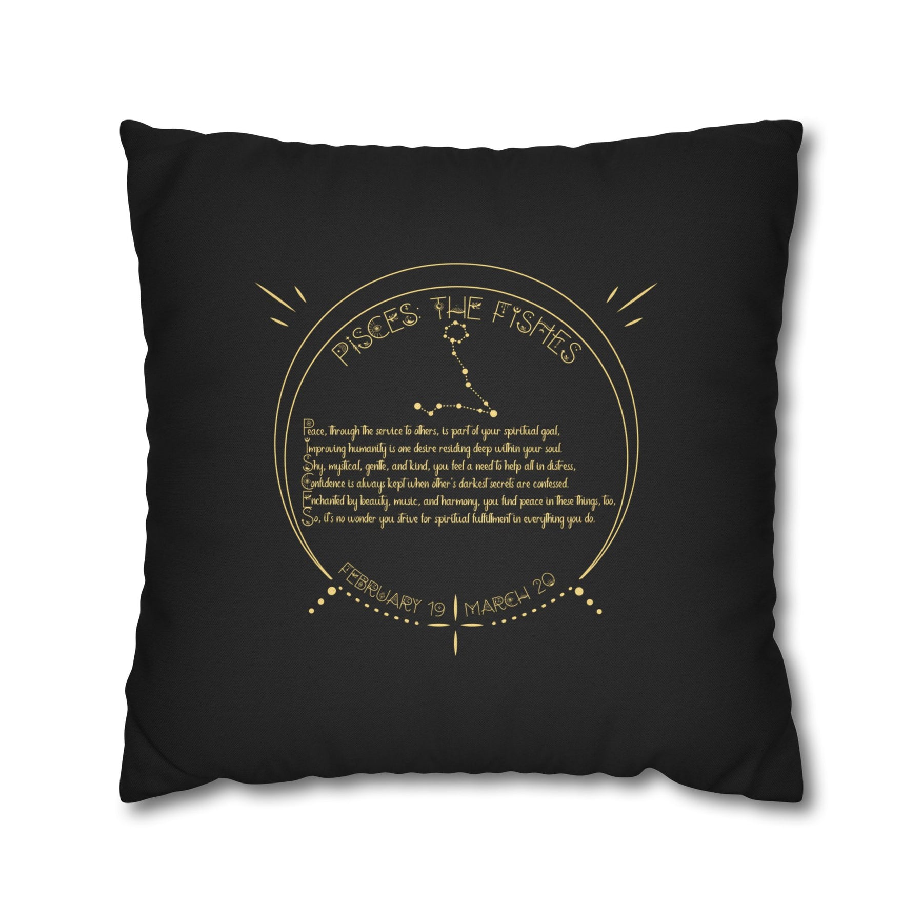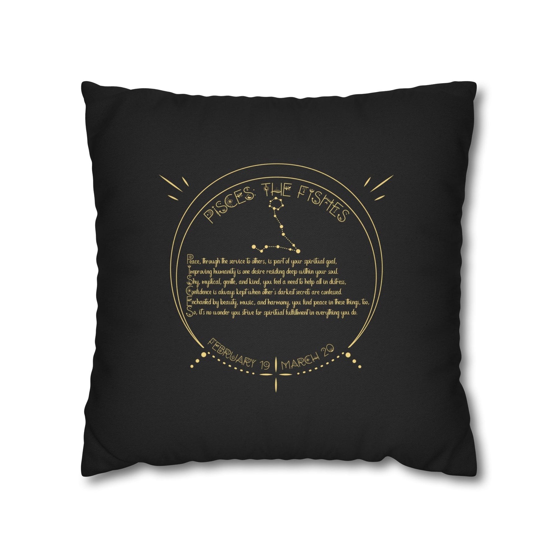 Moments in Rhyme presents our "Written in the Stars Pillow" pillow collection. One side has an acrostic poem spelling out "Pisces",  with the traits and spiritual goal incorporated in the poem. The other side has a unique version of the astrological sign. These serve as statement pieces, making any room very special. Celebrate your astrological sign. Perfect for astrology enthusiasts and those looking to add a personal touch to their home decor. Ideal for birthdays, holidays, or any special occasions.