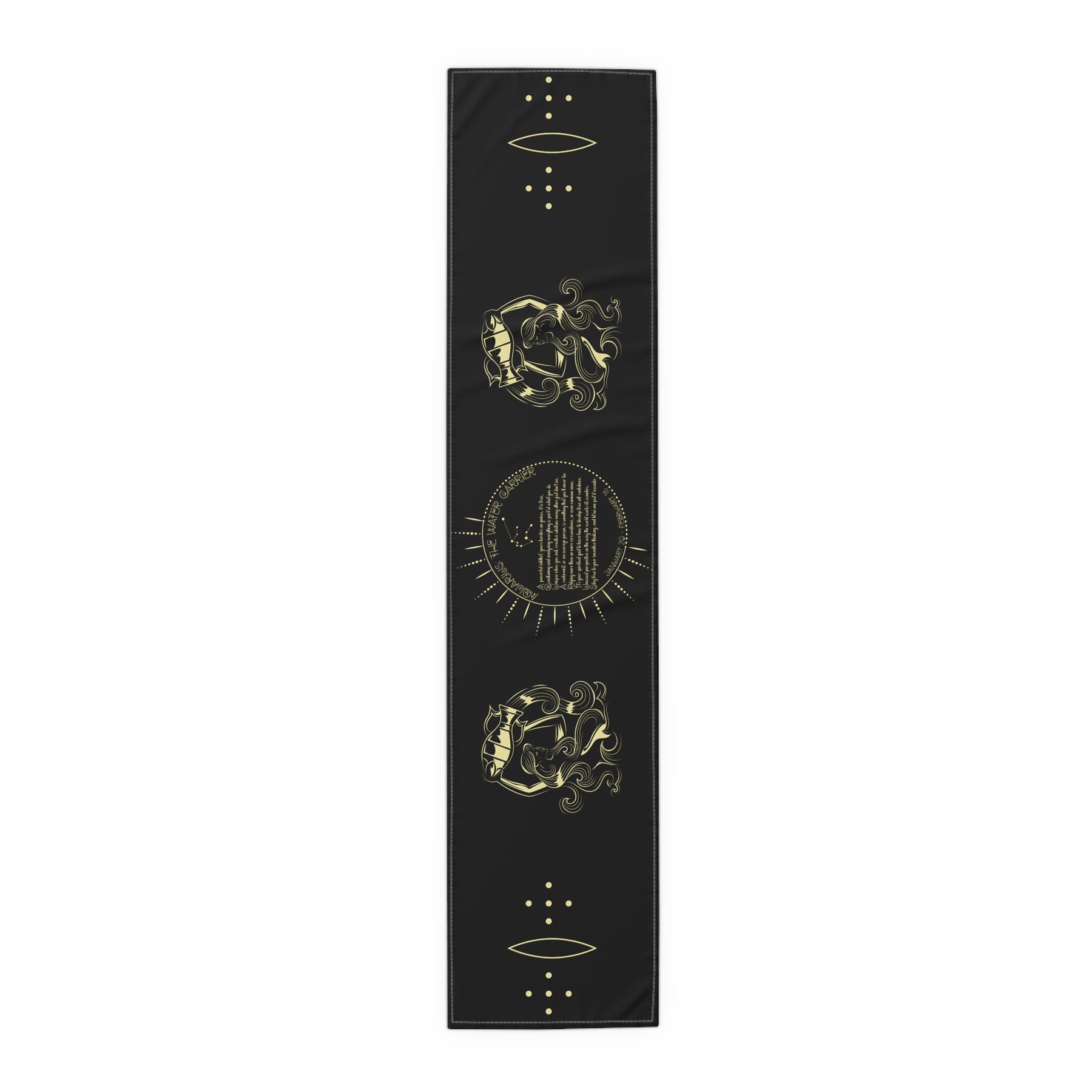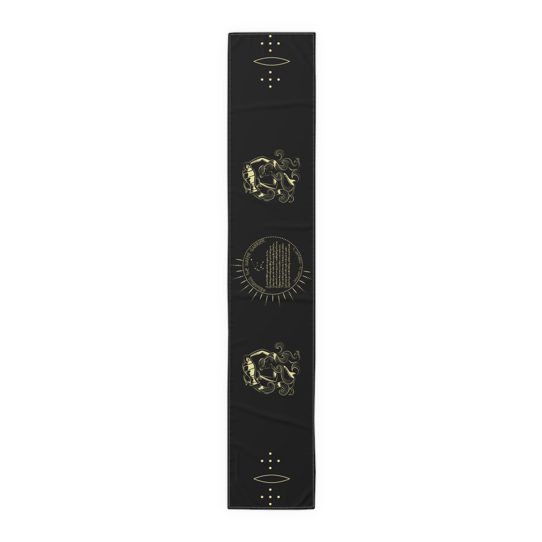 This celestial-themed table runner is an excellent pick for astrology fans. It makes a thoughtful gift for birthdays or holidays. The Written in the Stars design features an acrostic poem that spells out Aquarius in a unique celestial font. Use it to add a playful touch to your next gathering. It's perfect for anyone who loves astrology or enjoys hosting gatherings with friends. Available in two materials and two sizes, with hemmed edges for durability. Note: The polyester material features a more vibrant design than the Cotton twill material.