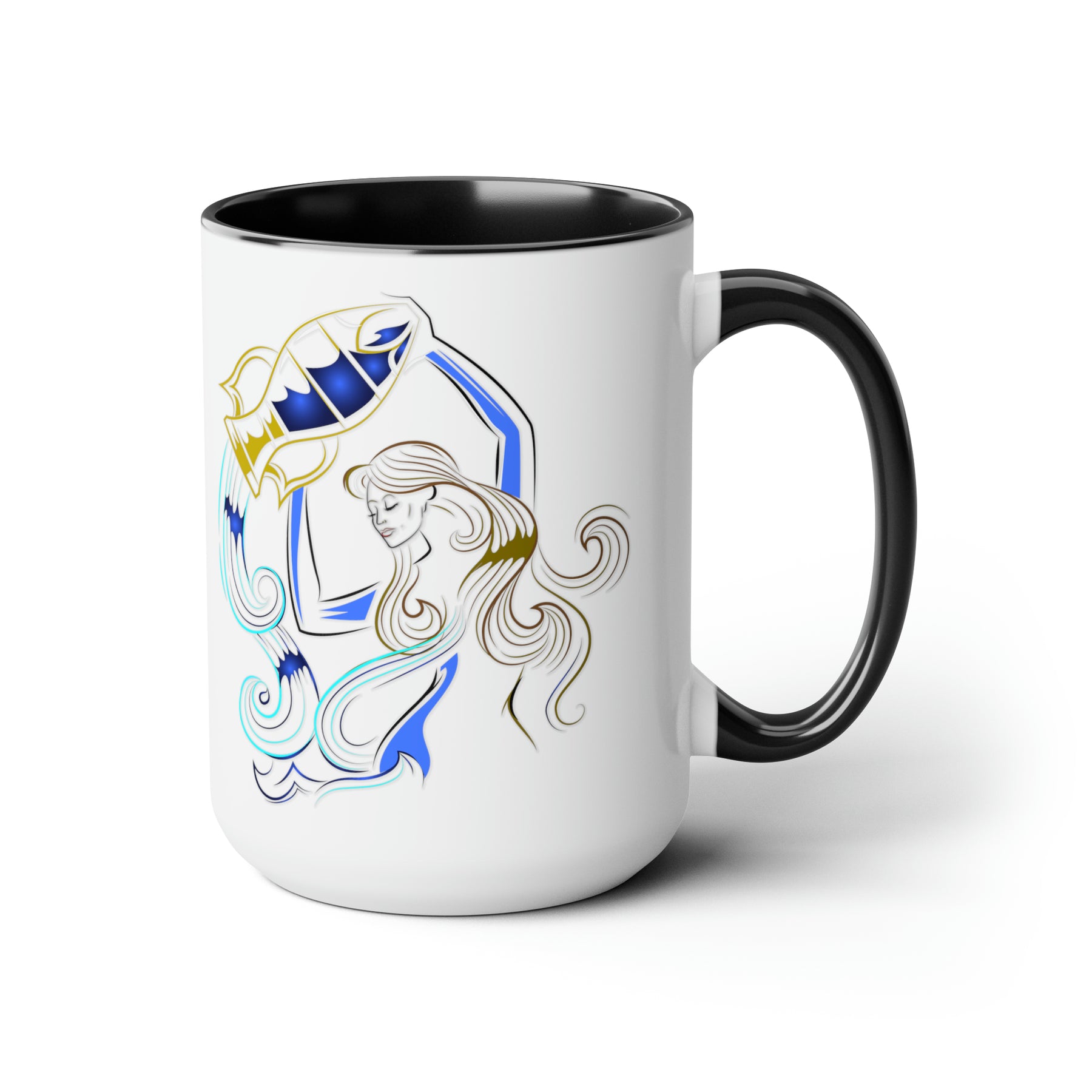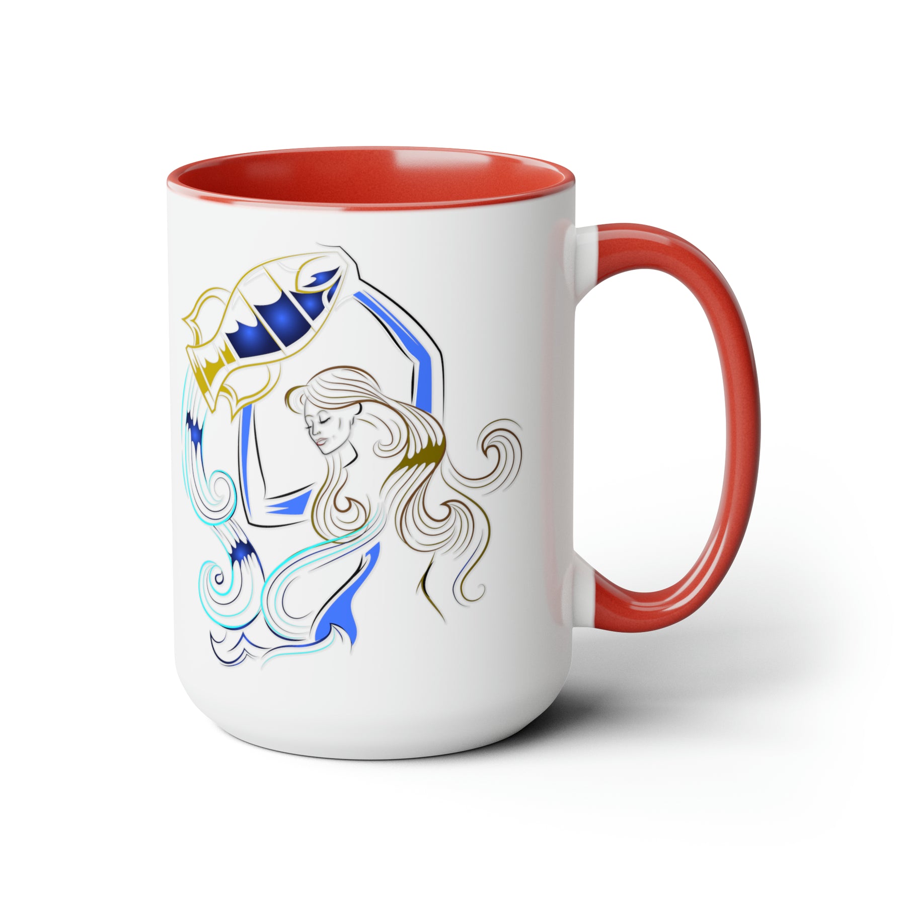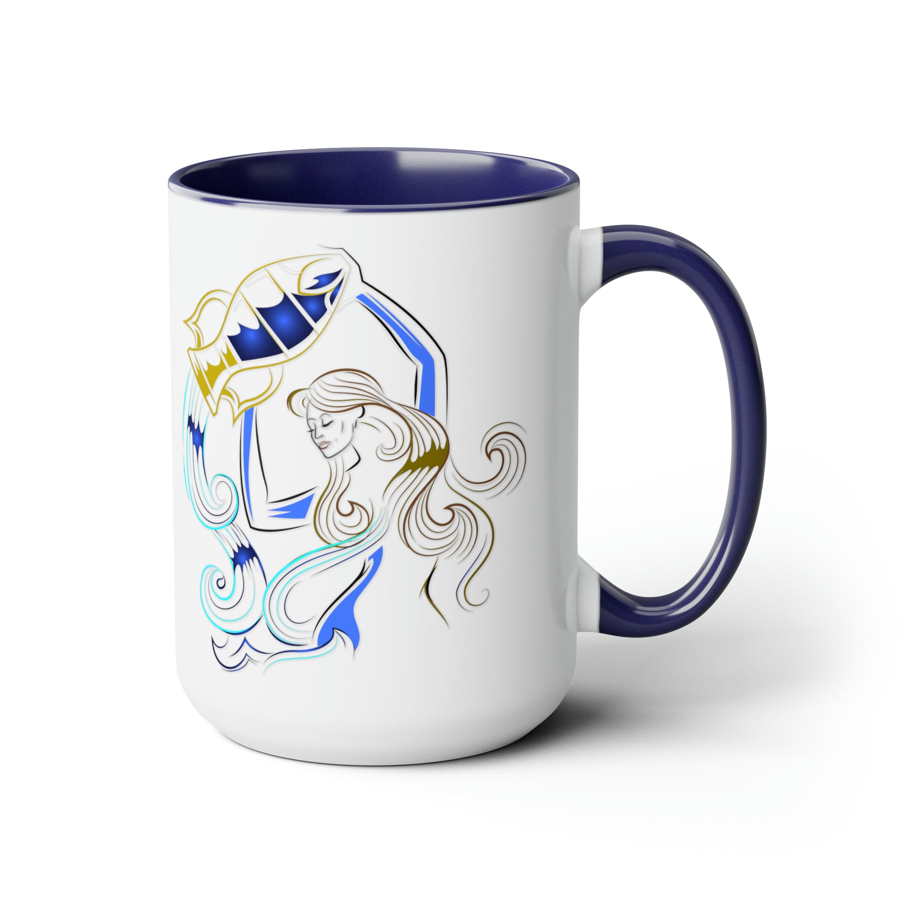 Here to bring big gulps of coffee and style, our Written in the Stars two-tone coffee mugs help people around the world start the day just right. This mug has an acrostic poem spelling out "Aquarius" with traits and purpose included.