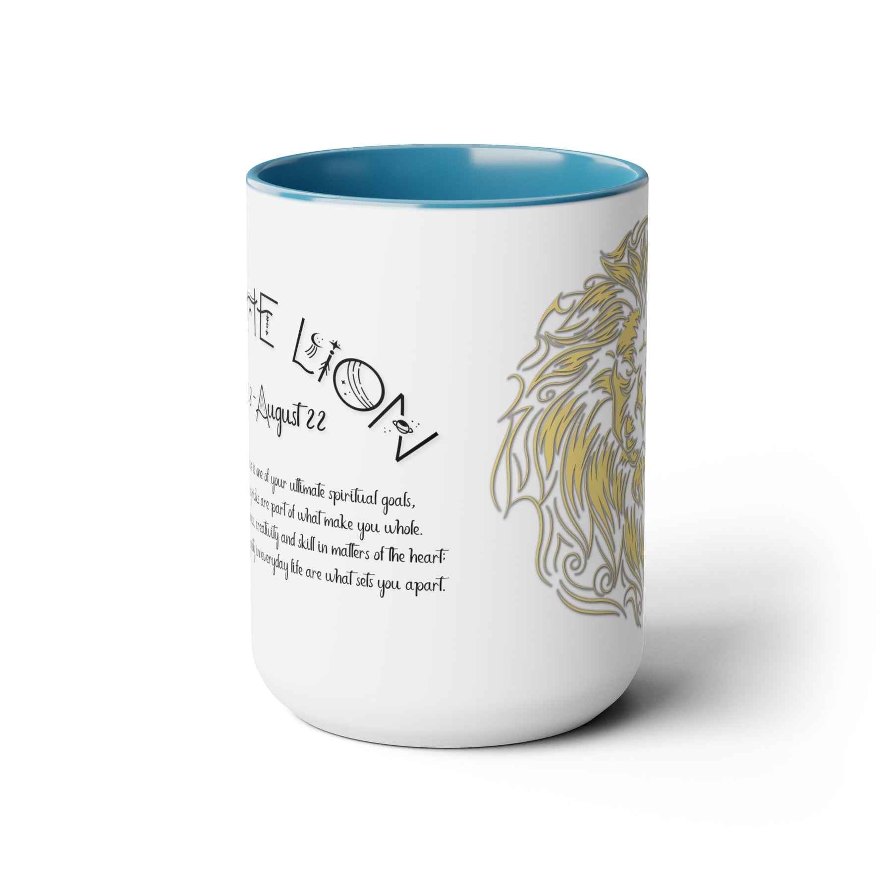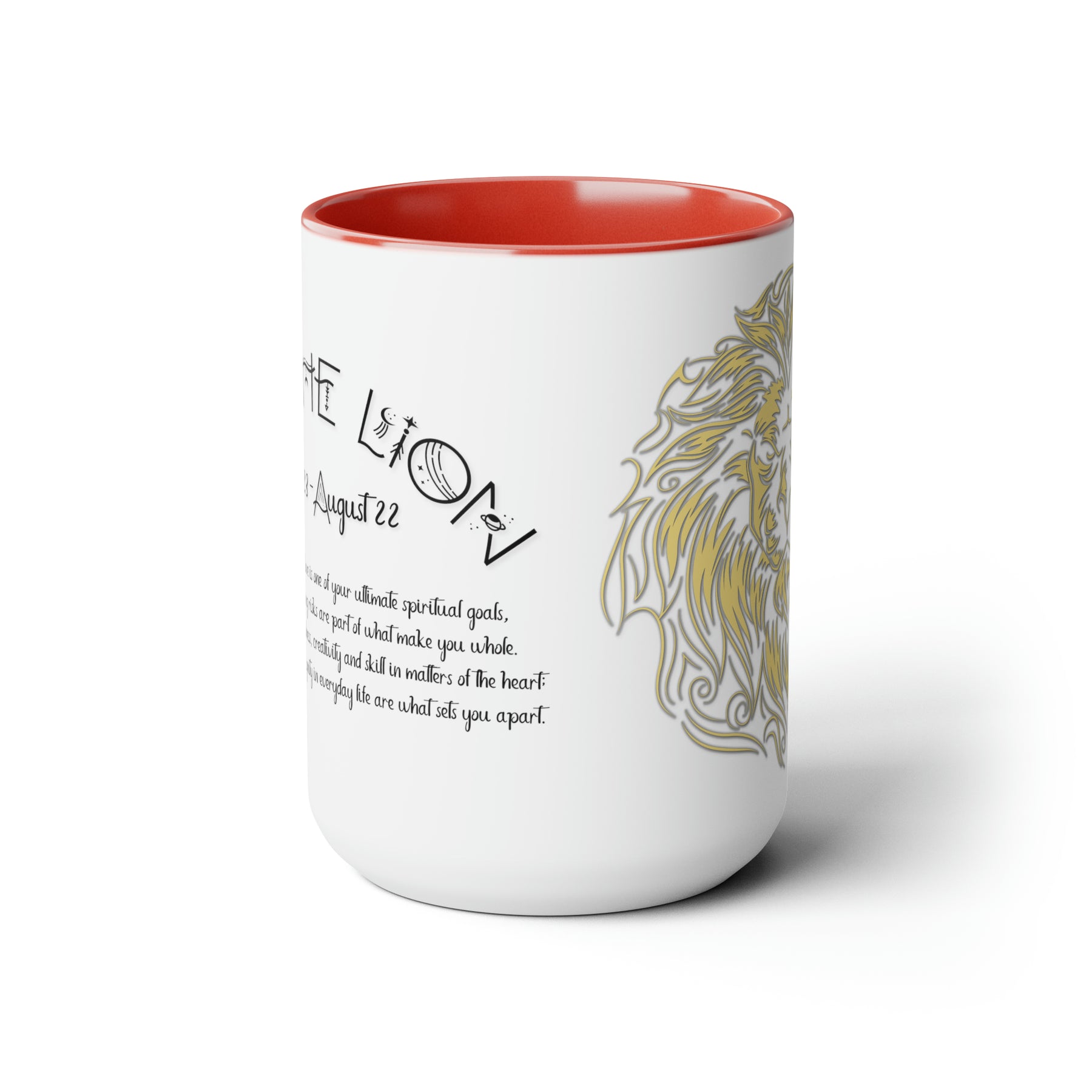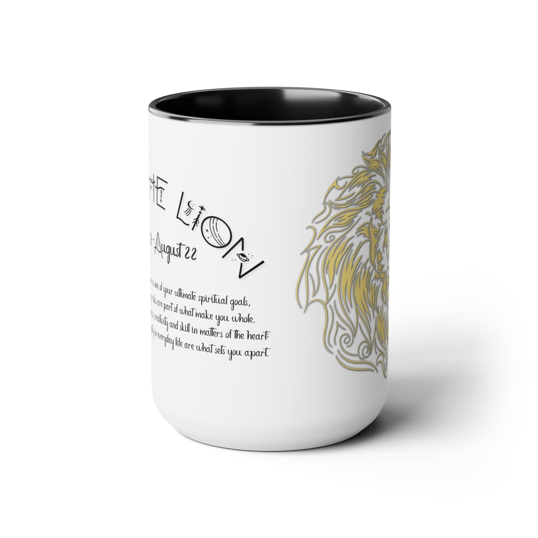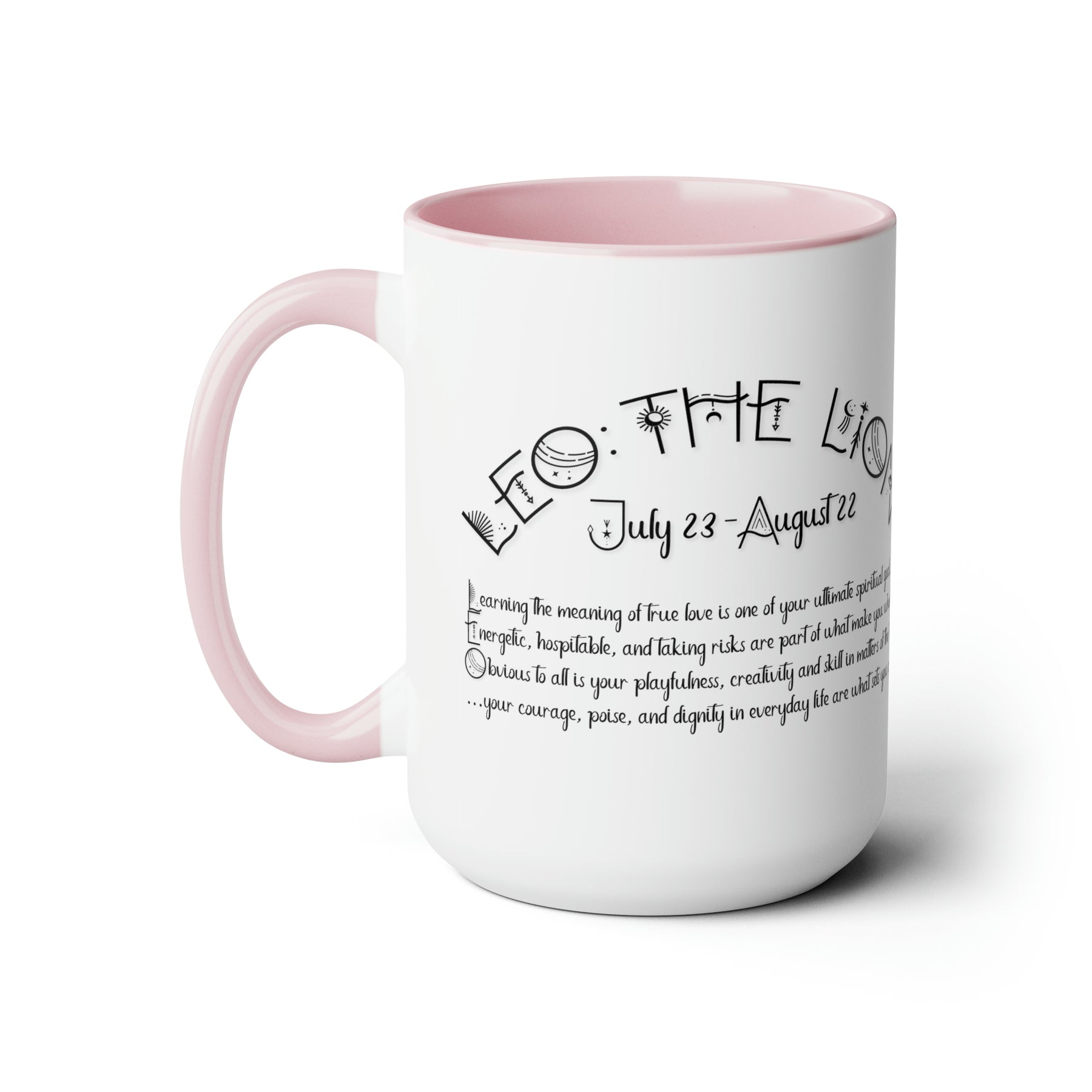 Here to bring big gulps of coffee and style, our Written in the Stars two-tone coffee mugs help people around the world start the day just right. This mug has an acrostic poem spelling out "Leo" with traits and purpose included.