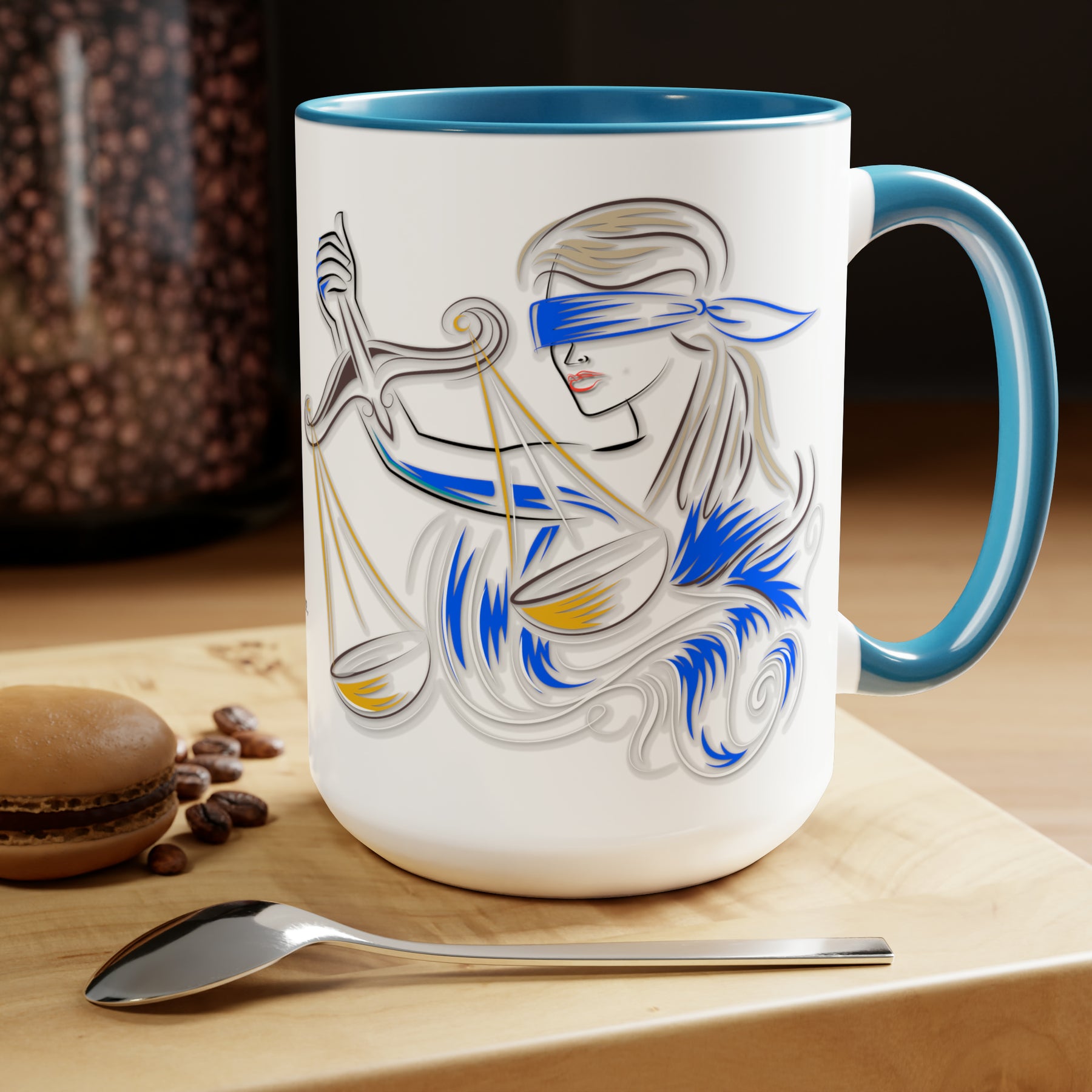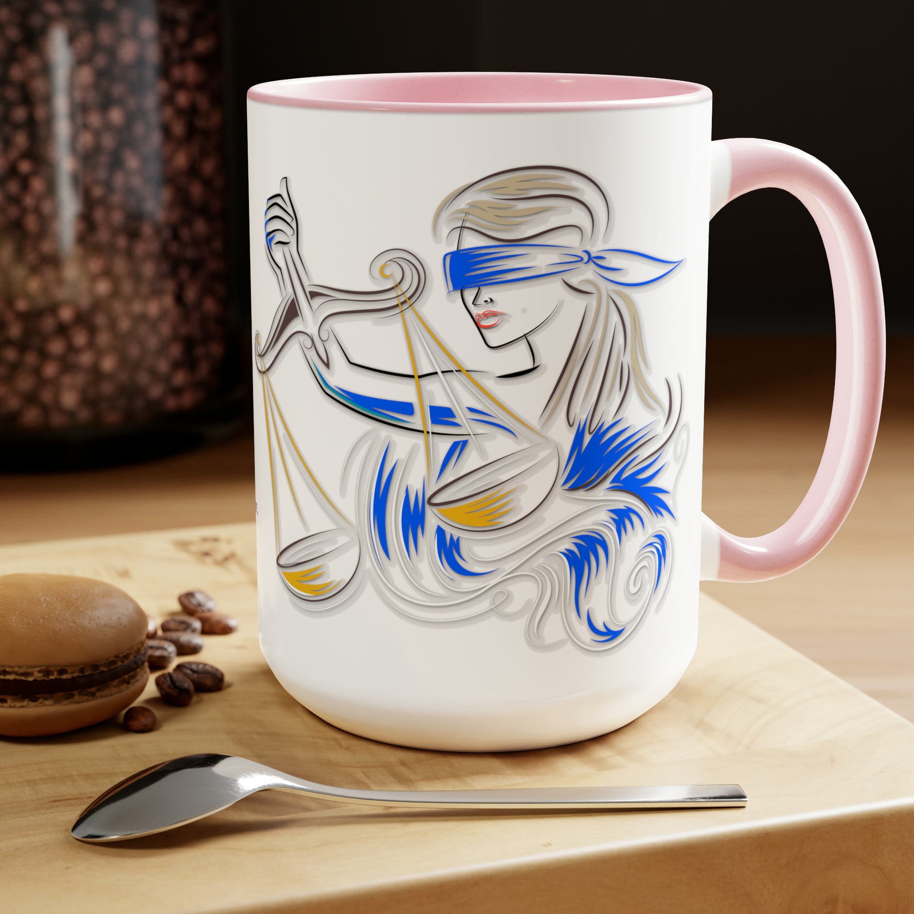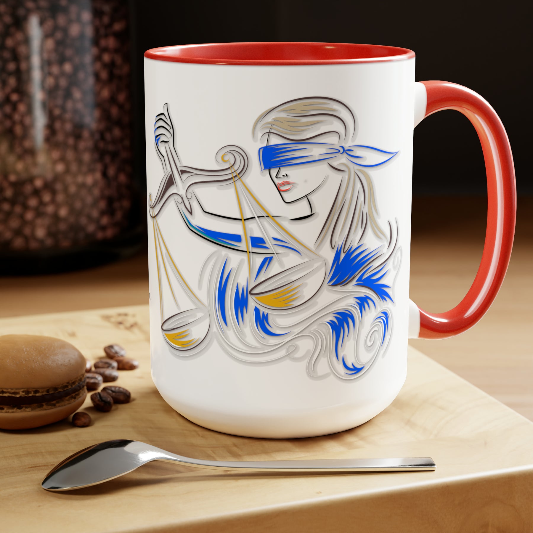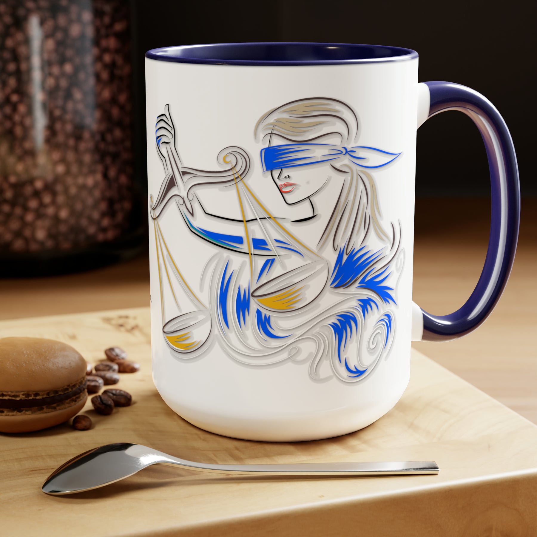 Here to bring big gulps of coffee and style, our Written in the Stars two-tone coffee mugs help people around the world start the day just right. This mug has an acrostic poem spelling out "Libra" with traits and purpose included.