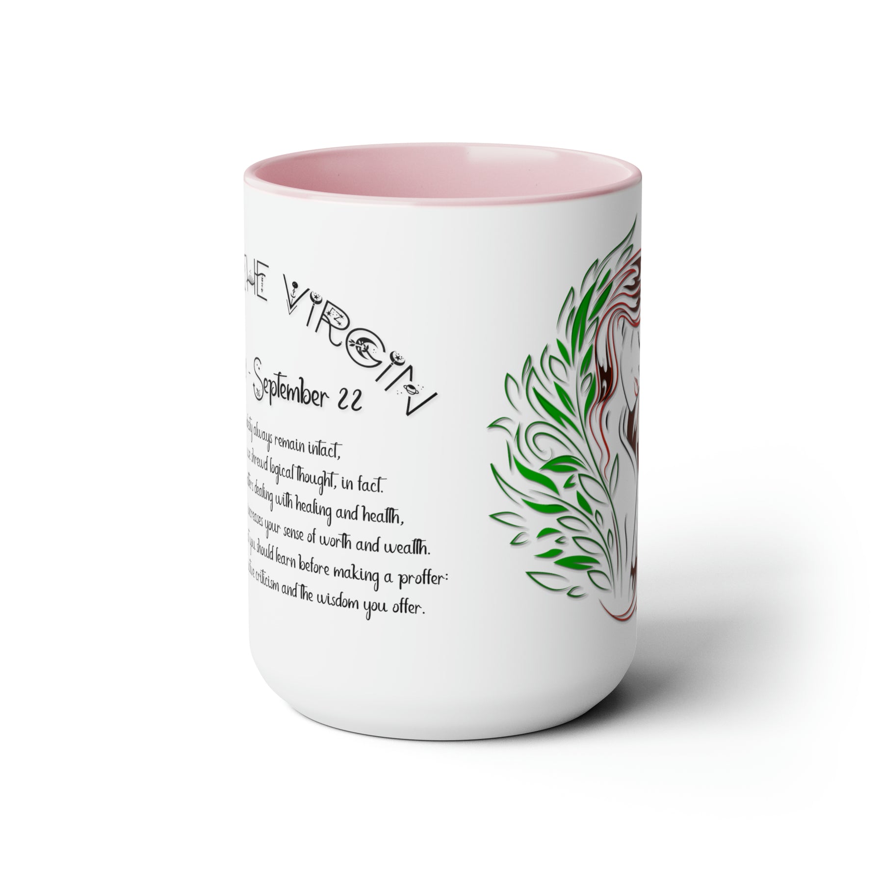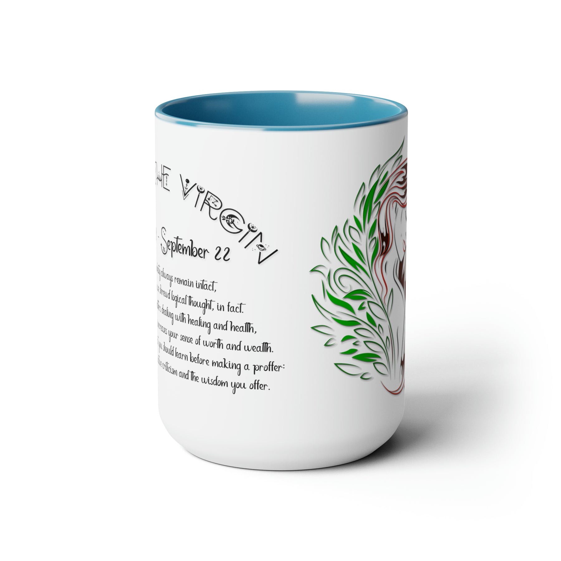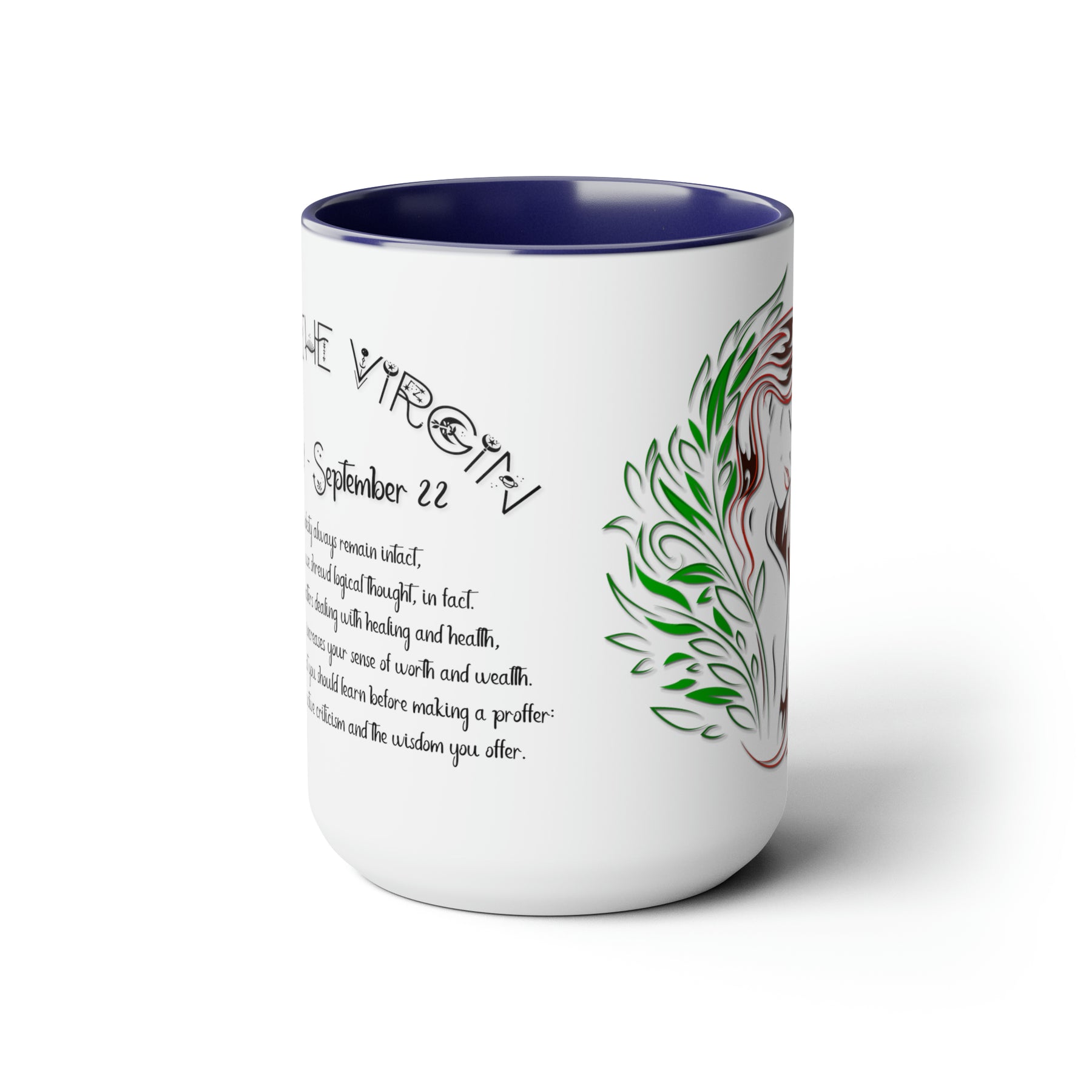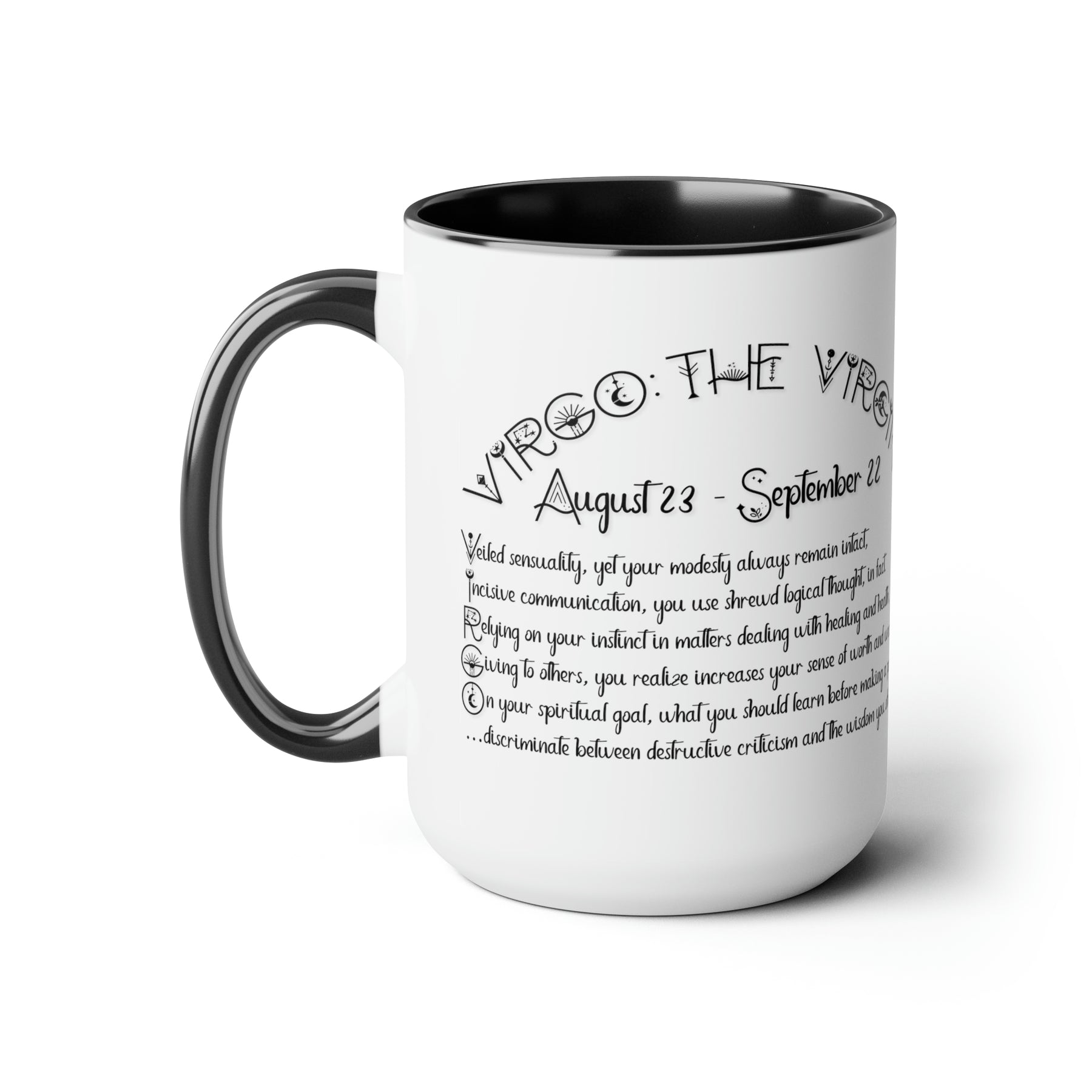 Here to bring big gulps of coffee and style, our Written in the Stars two-tone coffee mugs help people around the world start the day just right. This mug has an acrostic poem spelling out "Virgo" with traits and purpose included.