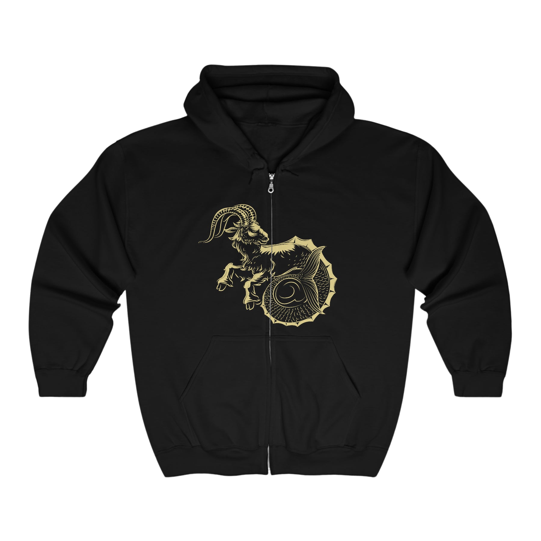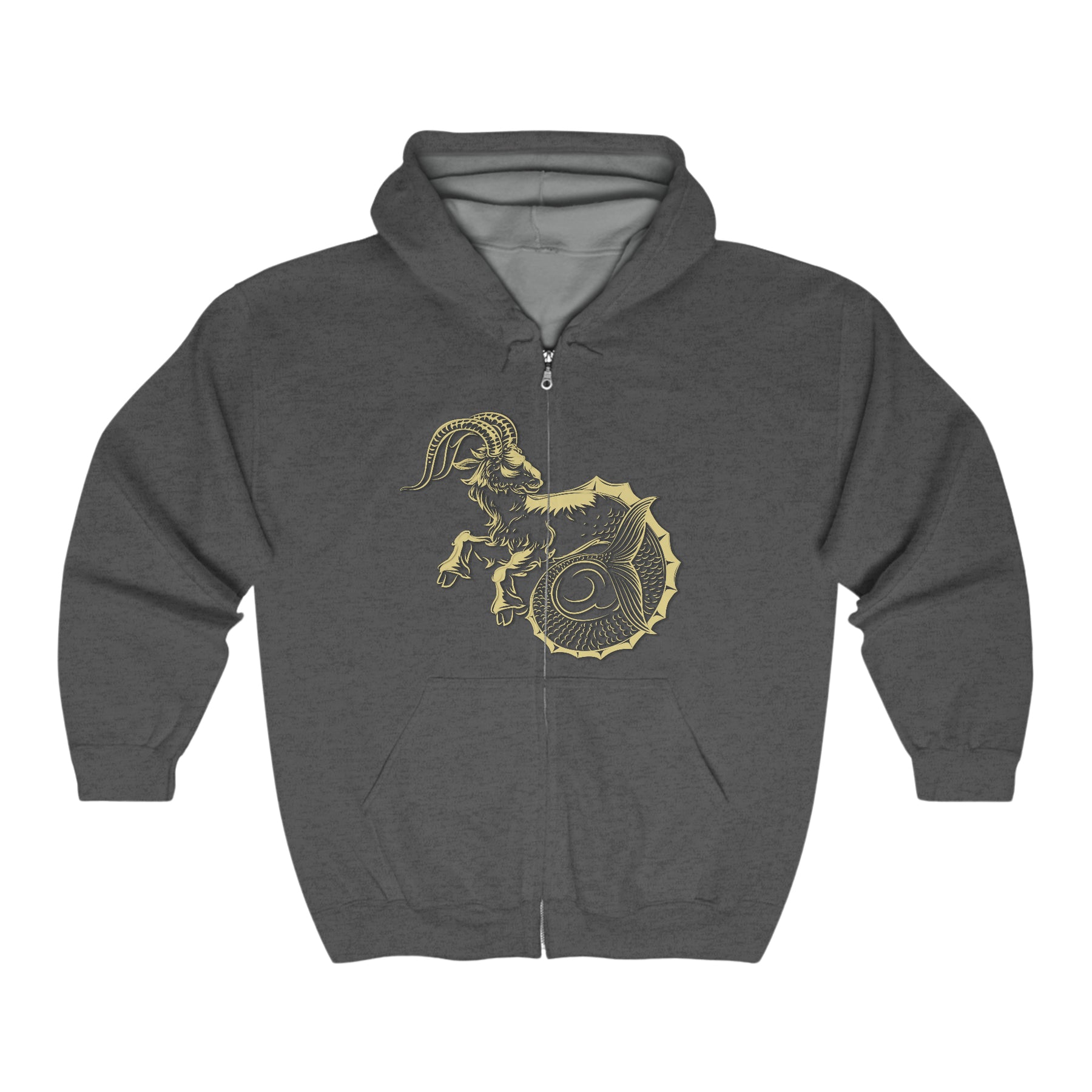 Discover the Written in the Stars Capricorn acrostic poem Unisex Full Zip Hooded Sweatshirt from Moments in Rhyme. This classic, comfortable zip-up is crafted with air-jet spun yarn for a soft, pilling-resistant fleece. The back features an acrostic poem spelling out "Capricorn," highlighting its traits and purpose, accompanied by a striking graphic on the front. You'll find it so cozy, you may never want to take it off.