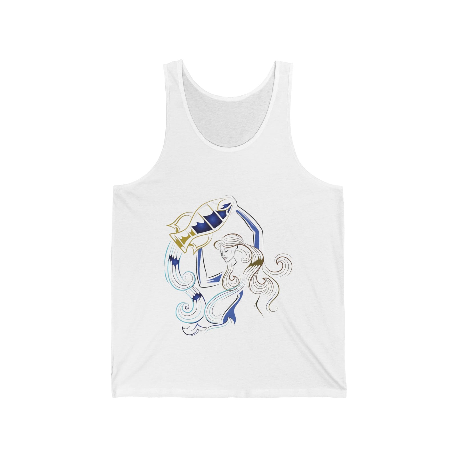 Feel like a star in our "Written in the Stars" must-have unisex jersey tank top with an acrostic poem on the back featuring traits of Aquarius the Water Carrier. The high-quality print makes it a statement piece for astrology lovers. Perfect for adults who enjoy astrology and are looking for a unique gift. Ideal for birthdays, holidays, or any astrology-themed celebrations. Check out the amazing celestial font!